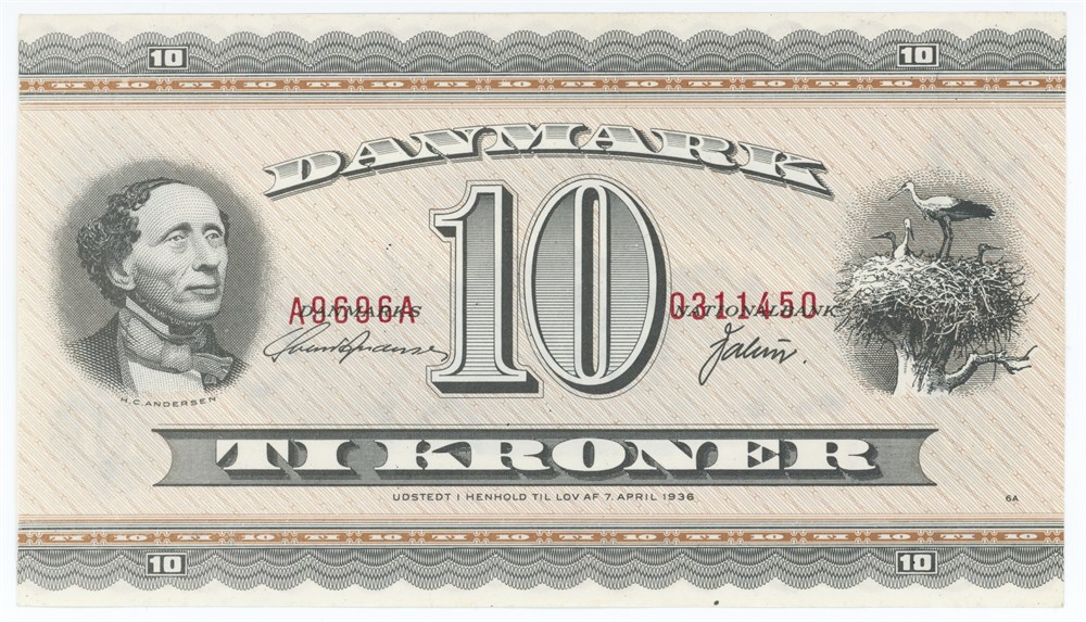 10 kroner 1969 A9, nr. 0311450, Svend Andersen / Valuer, fejltryk.
