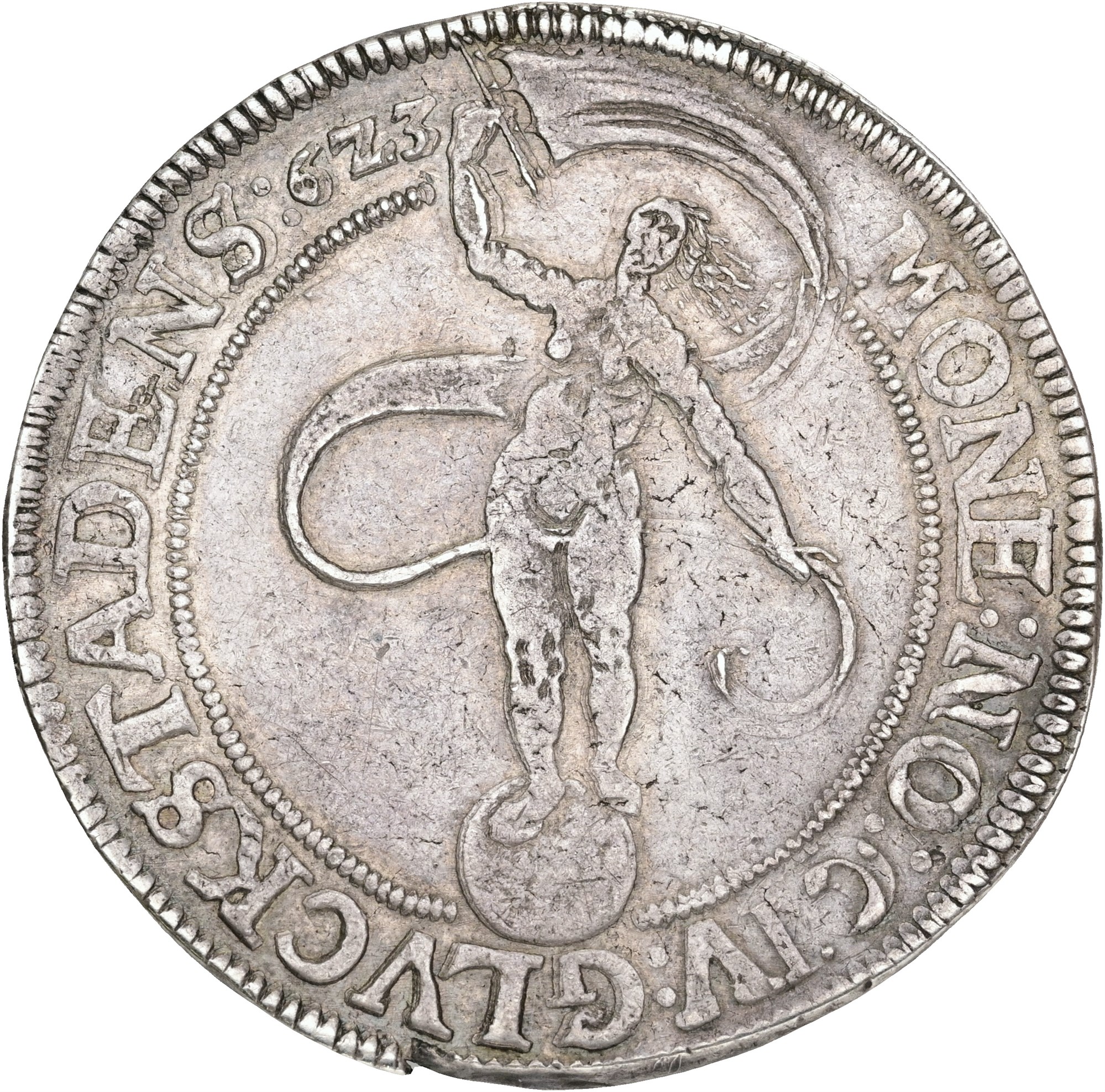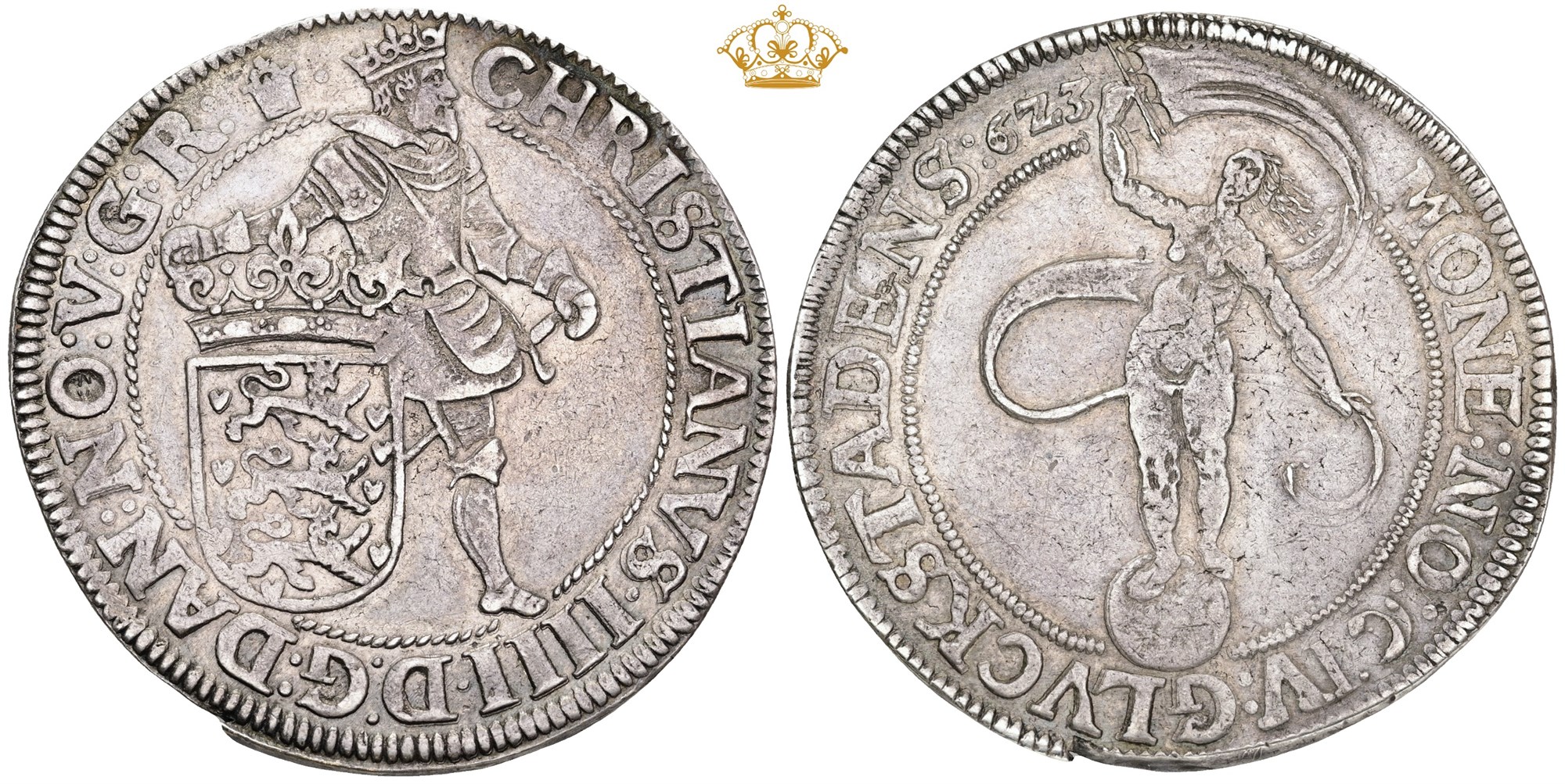 Speciedaler 1623, blanketfejl i rand, pænt eksemplar.