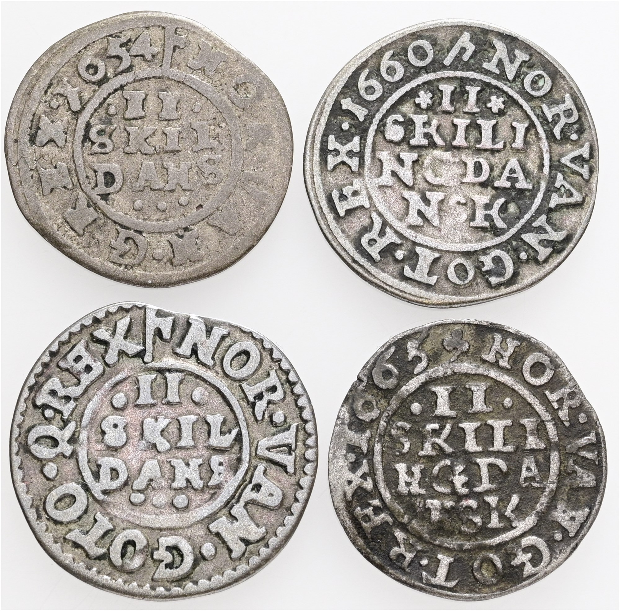 2 skilling 1650, 1654, 1660, 1665. (4)