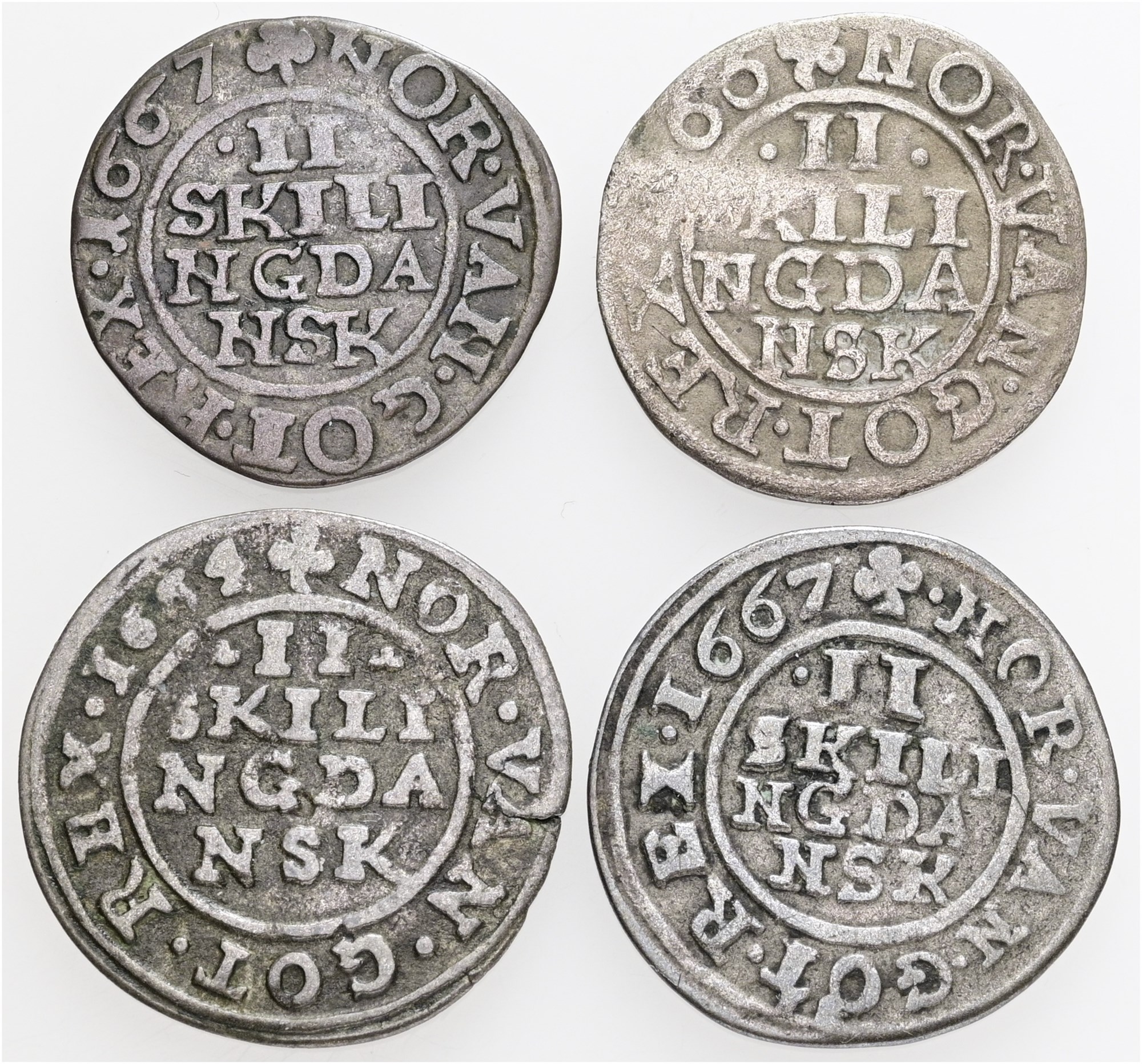 2 skilling 1664, 1665, 1667(2) forskellige. (4)