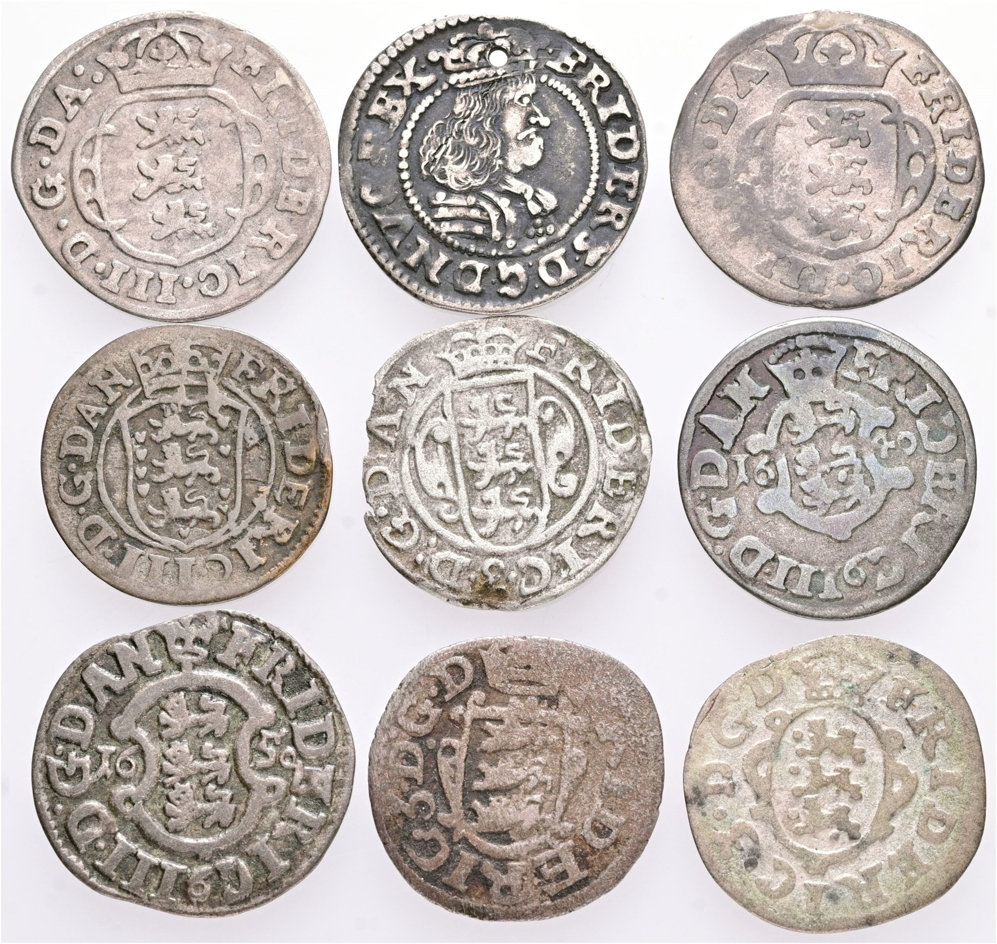 2 skilling 1649, 1650, 1654, 1655, 1662, 1664, 1665, 1668; Glückstadt, 3 skilling lybsk 1667. (9)