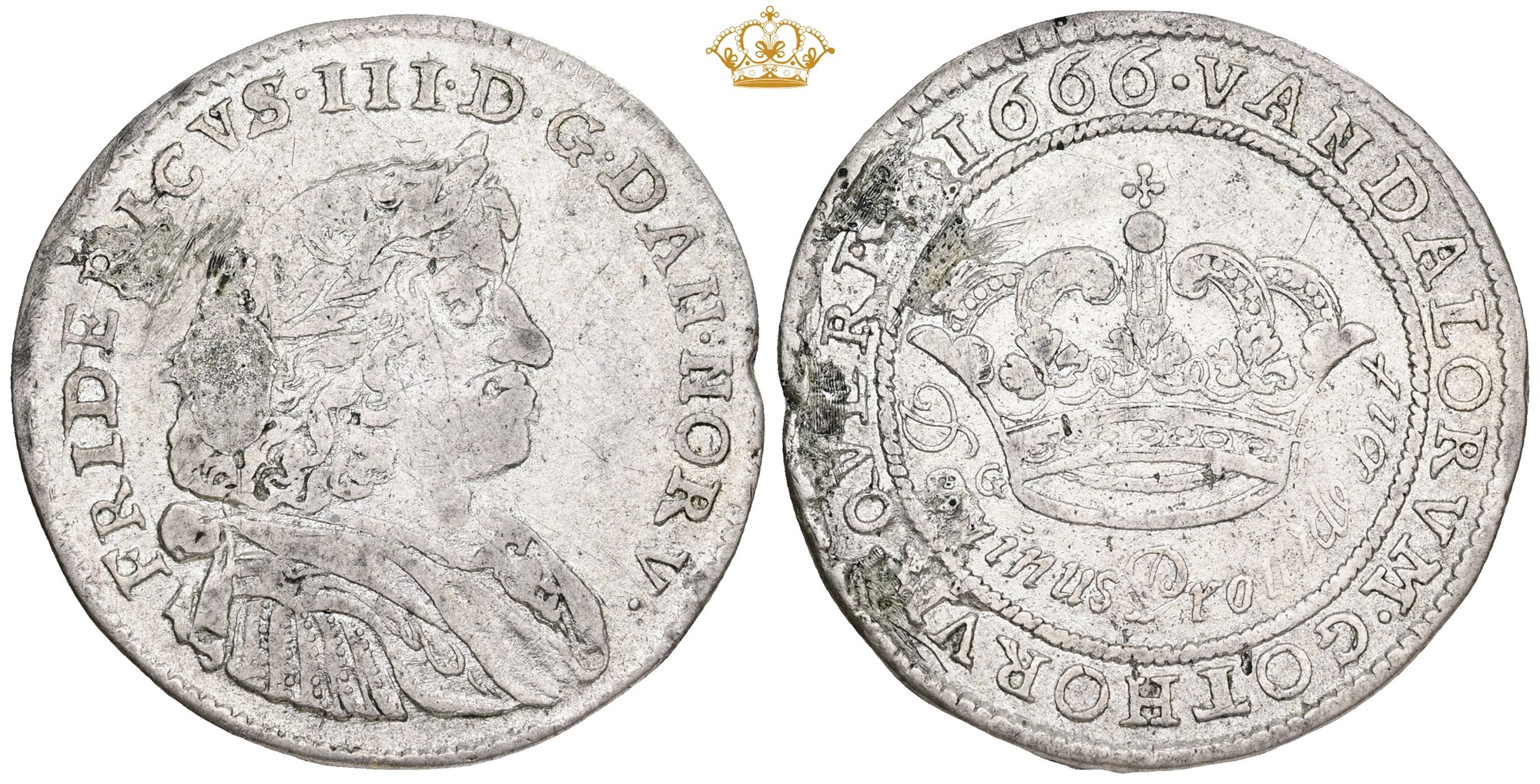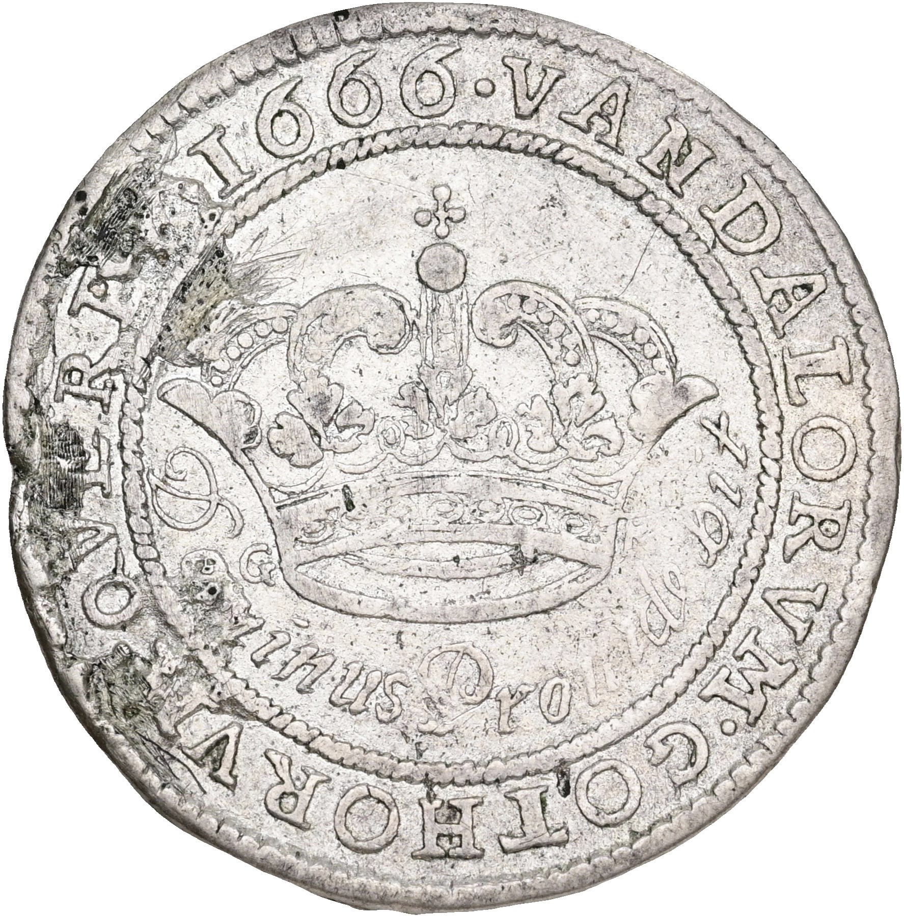 2 mark 1666, monteringsspor, renset.