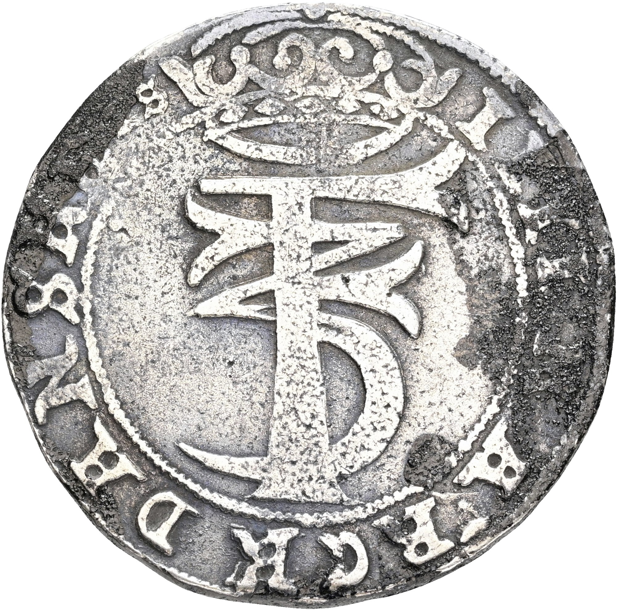 4 mark / krone 1659, sorte belægninger.