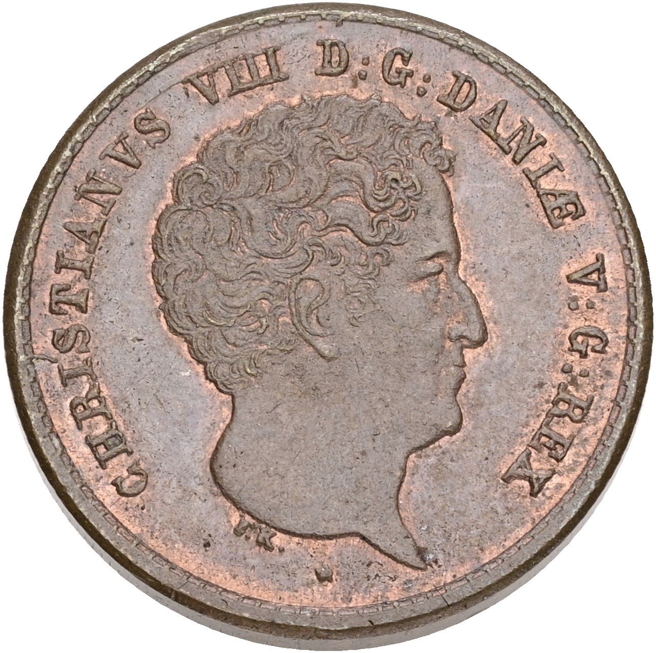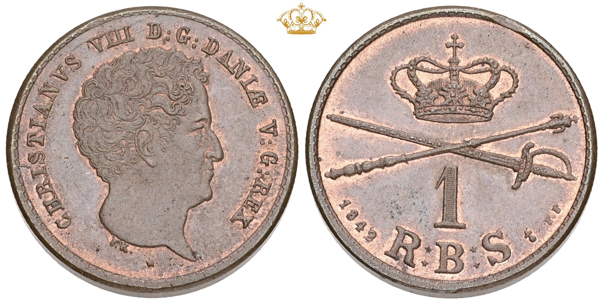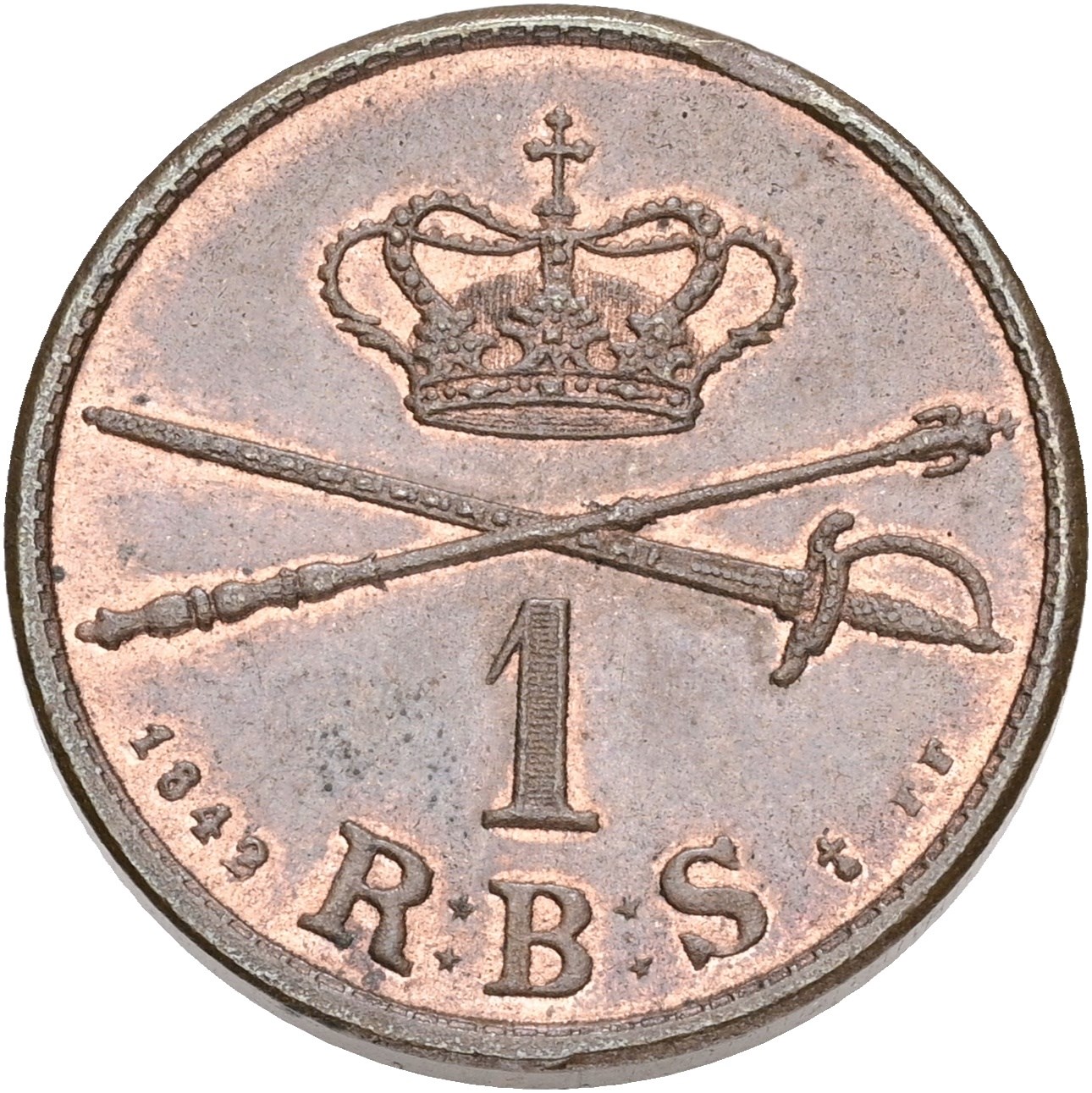 Rigsbankskilling 1842 FF, præget med rustne stempler.