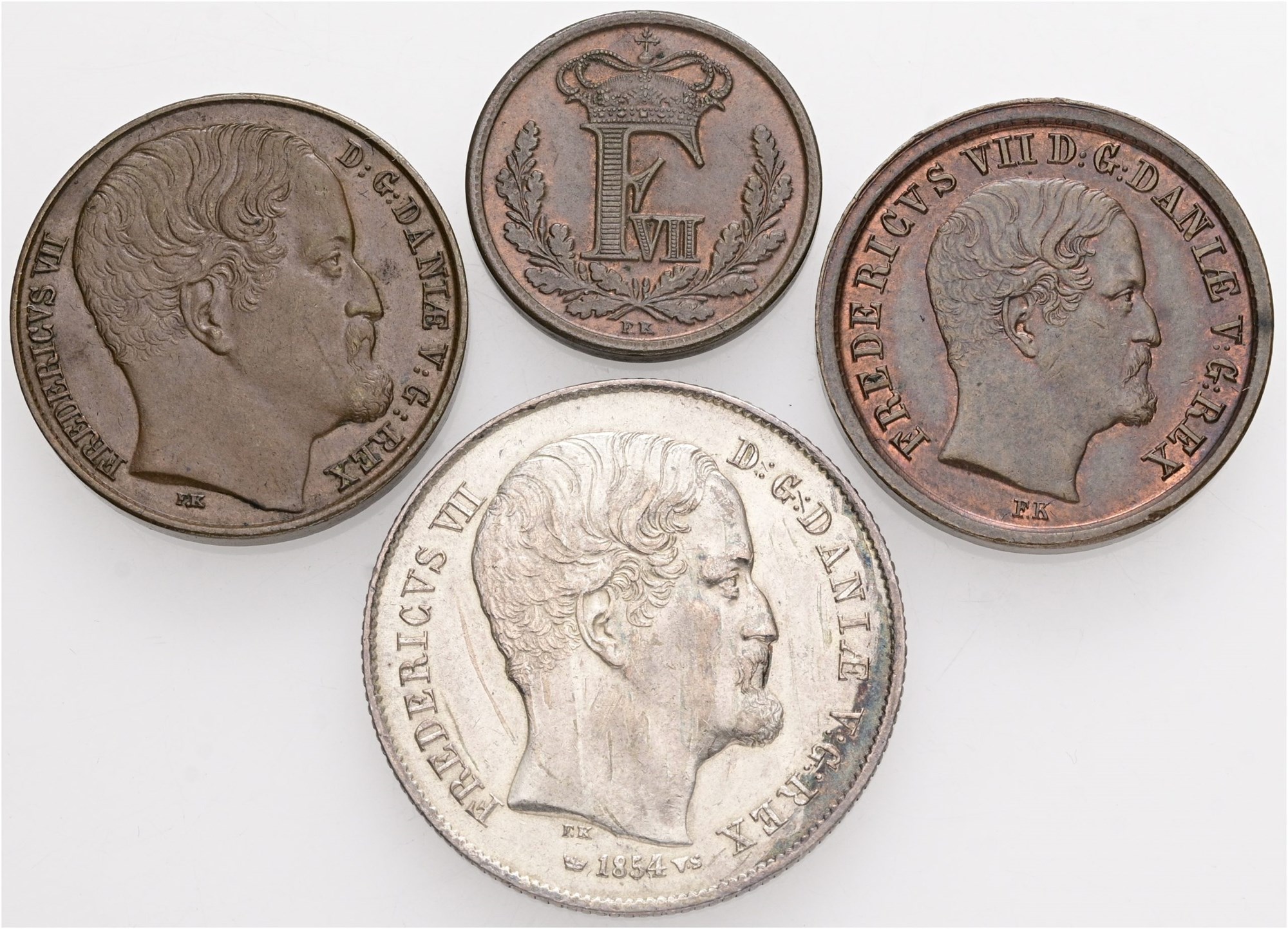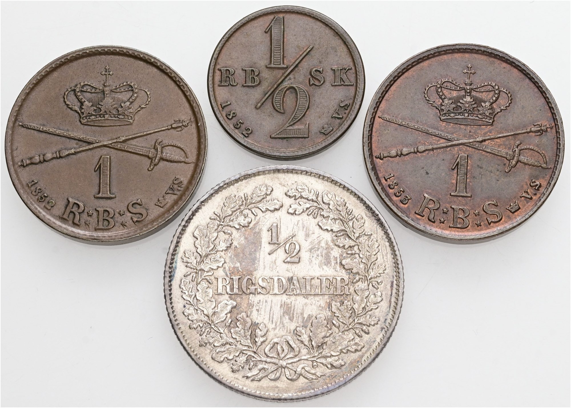 1/2 rigsbankskilling 1852; rigsbankskilling 1852, 1853; 1/2 rigsdaler 1854. (4)