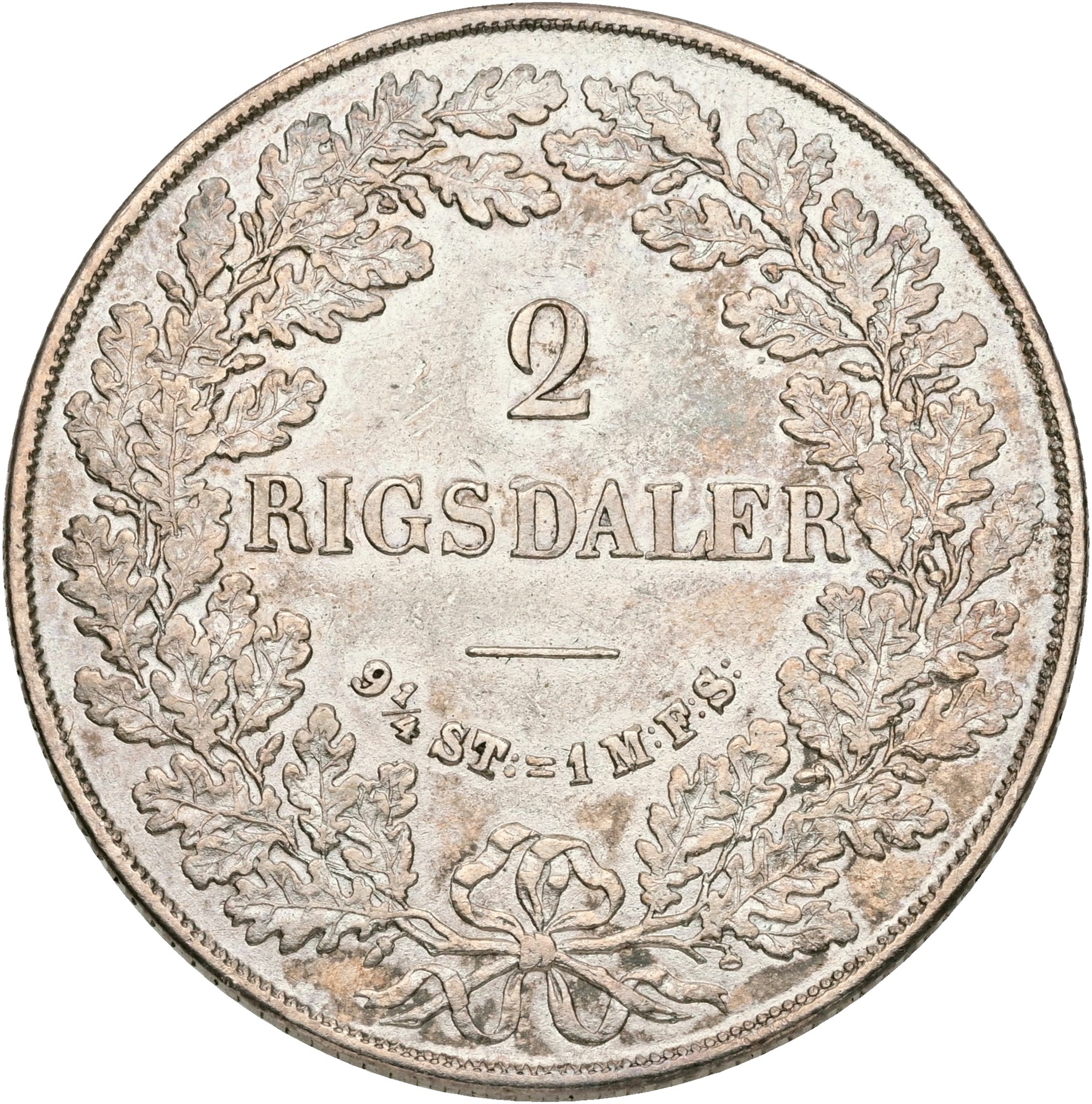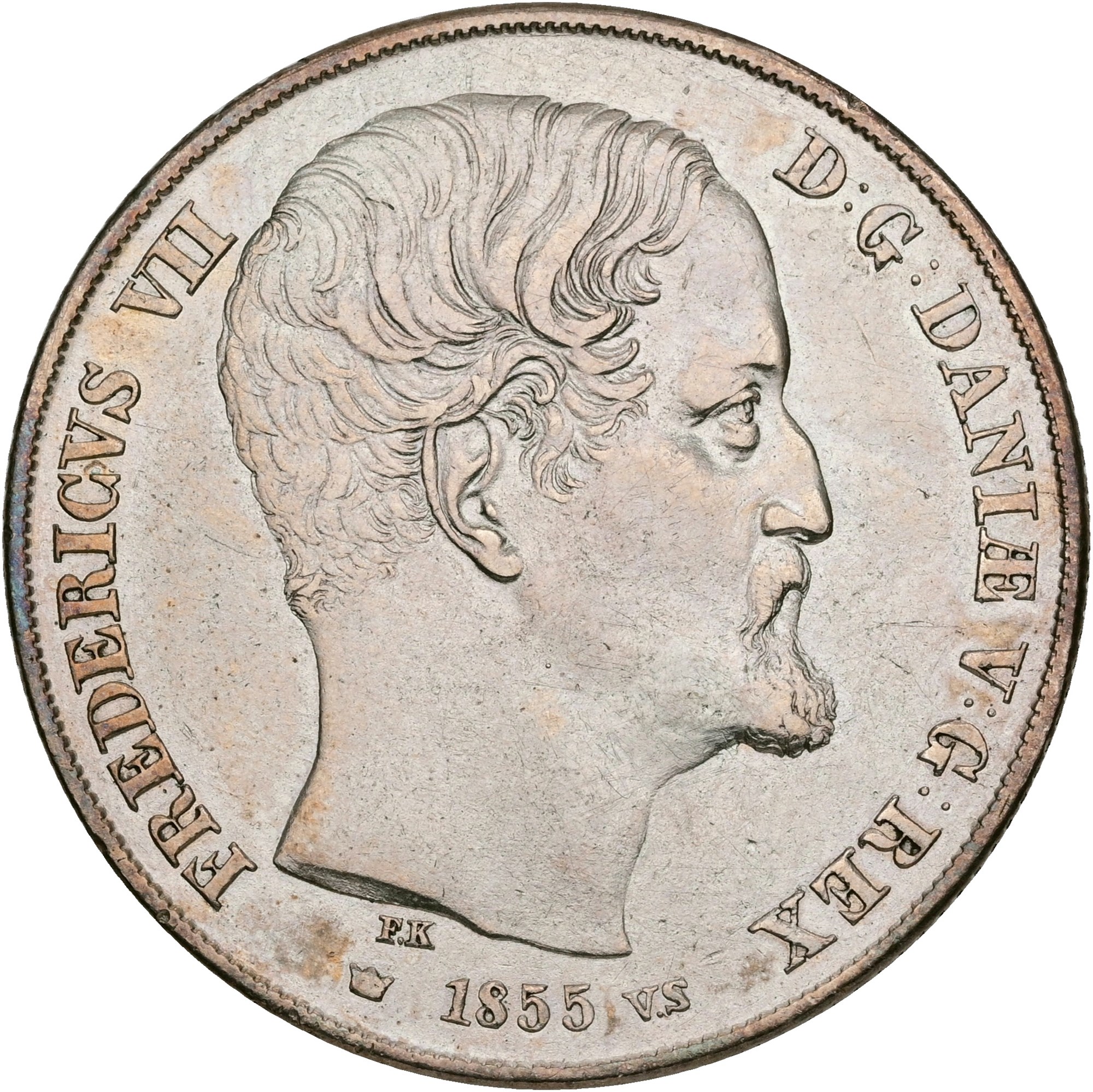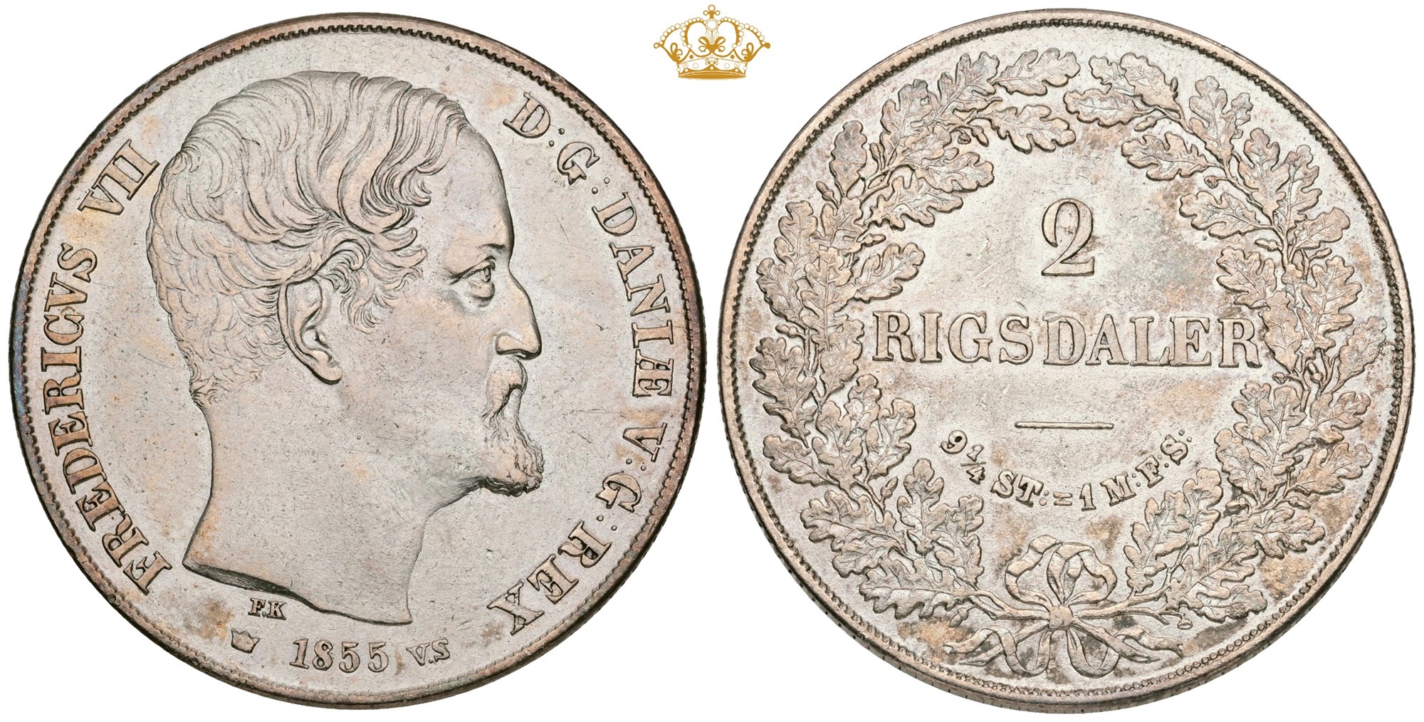 2 rigsdaler 1855 VS, minimale bobler på forsiden, let renset.