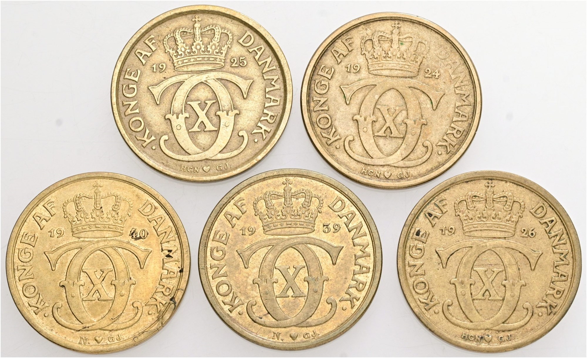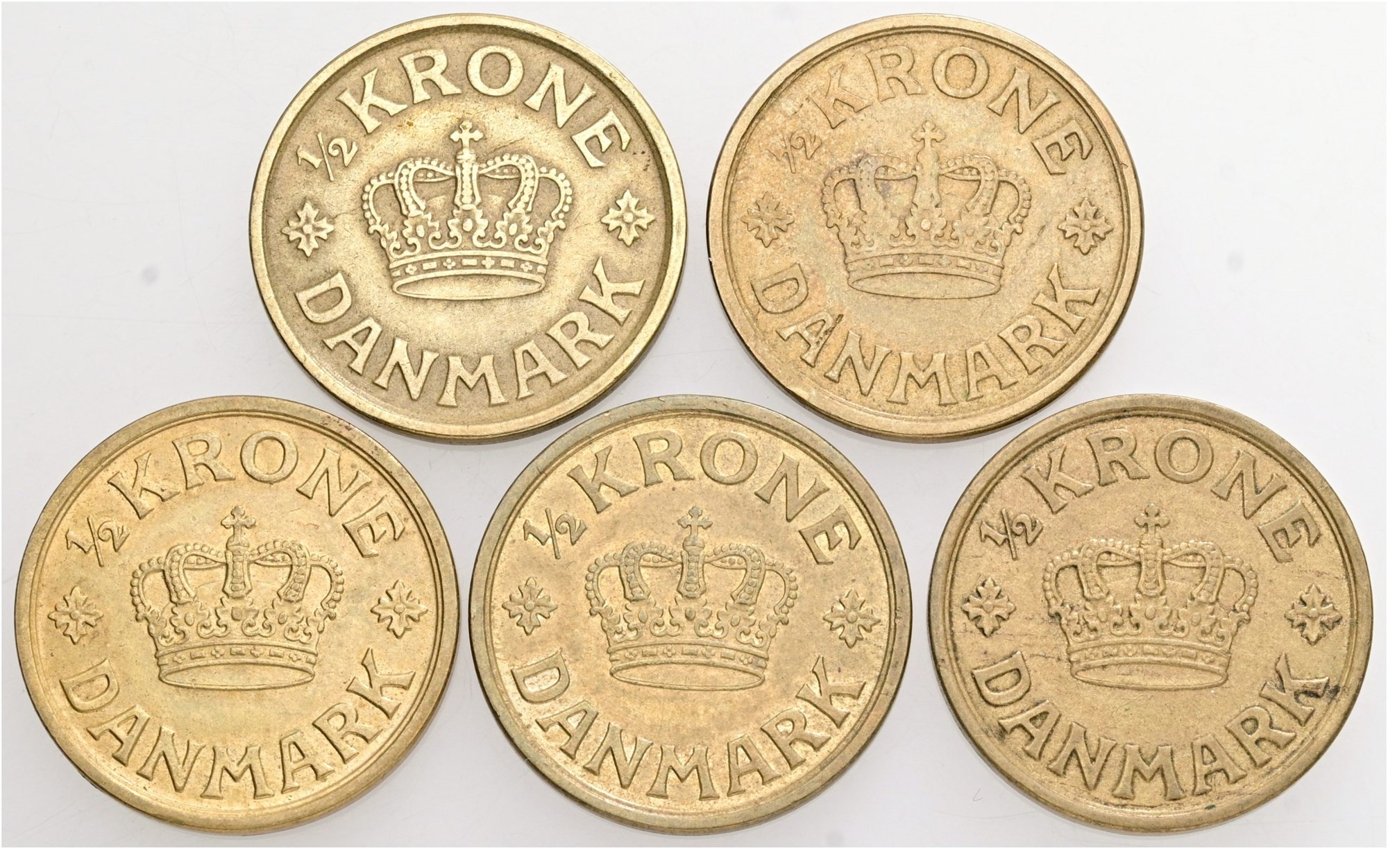 1/2 krone 1924, 1925, 1926, 1939, 1940. (5)