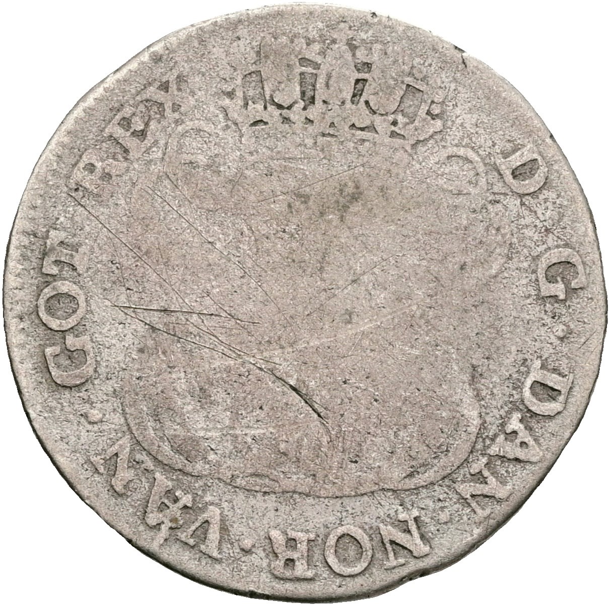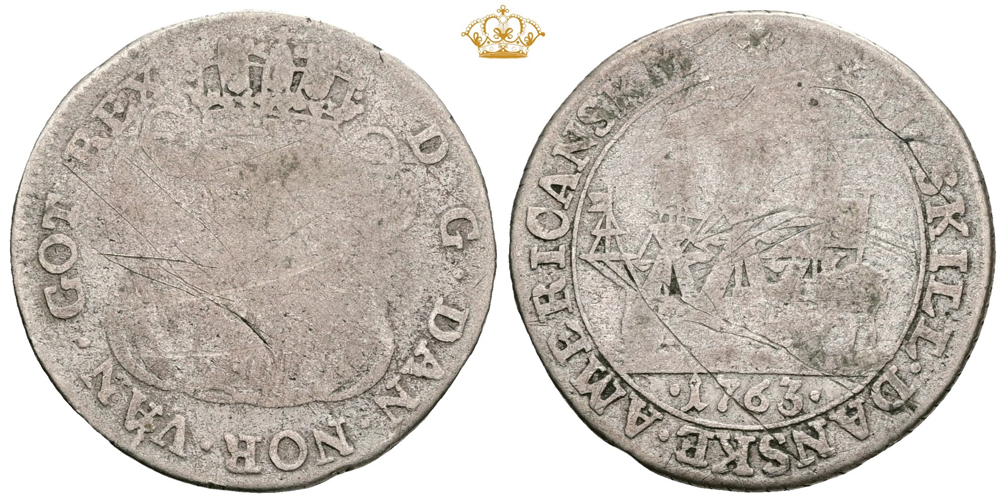 12 skilling 1763, ridser.
