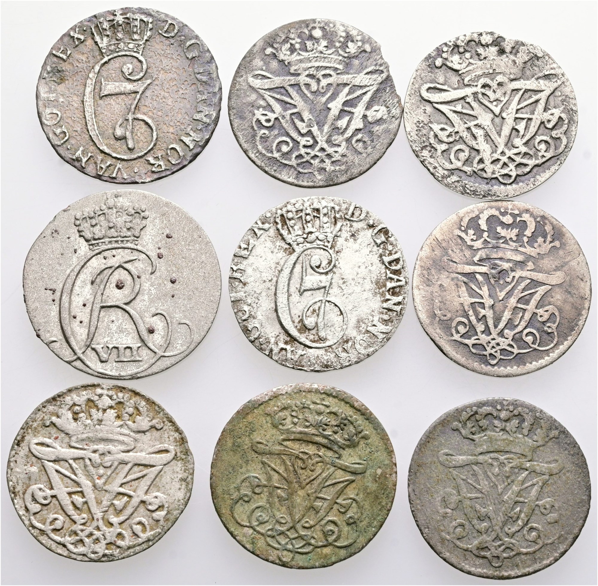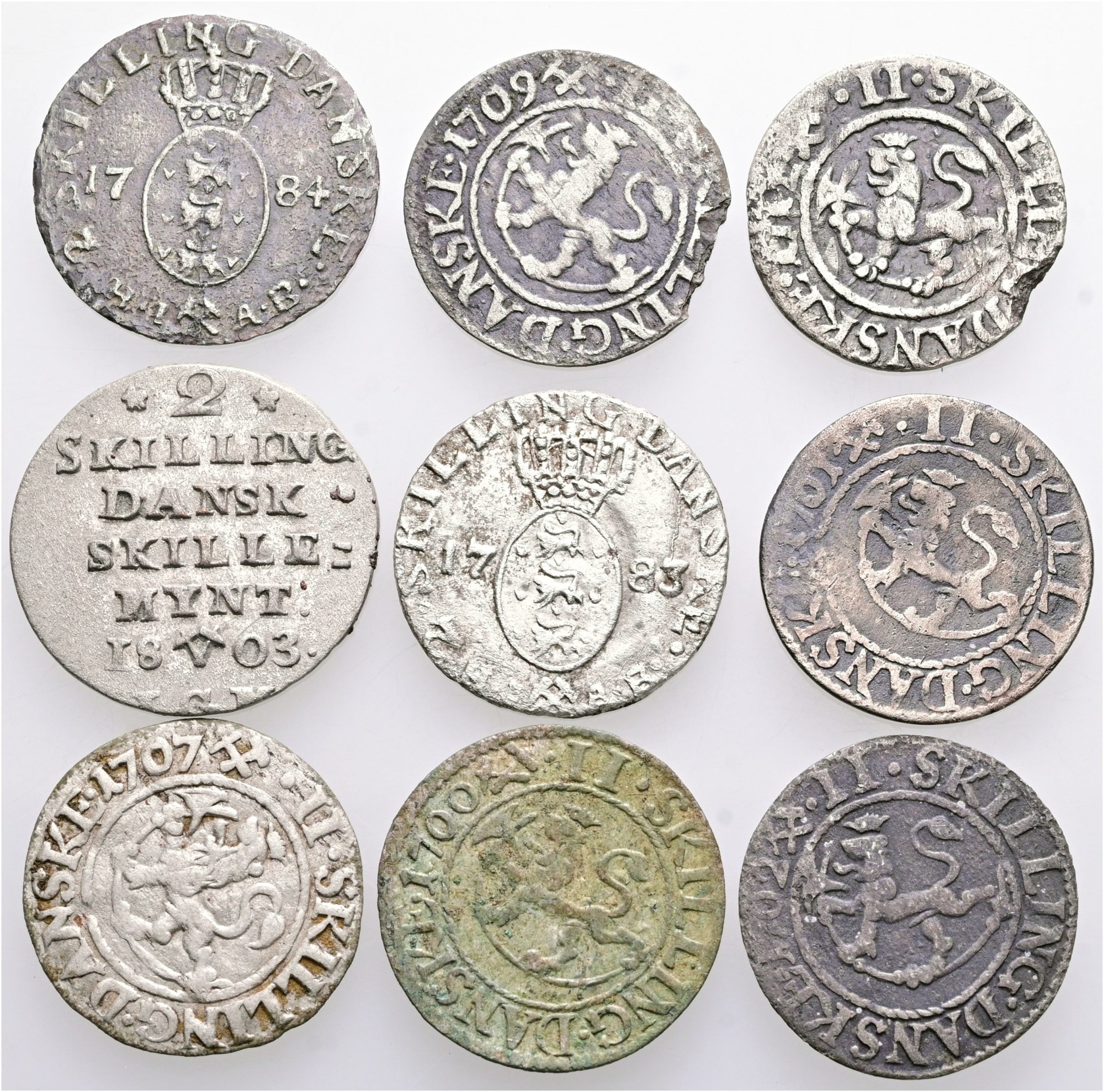 2 skilling 1700, 1701, 1702, 1707, 1709, 1712, 1783, 1784, 1803. (9)