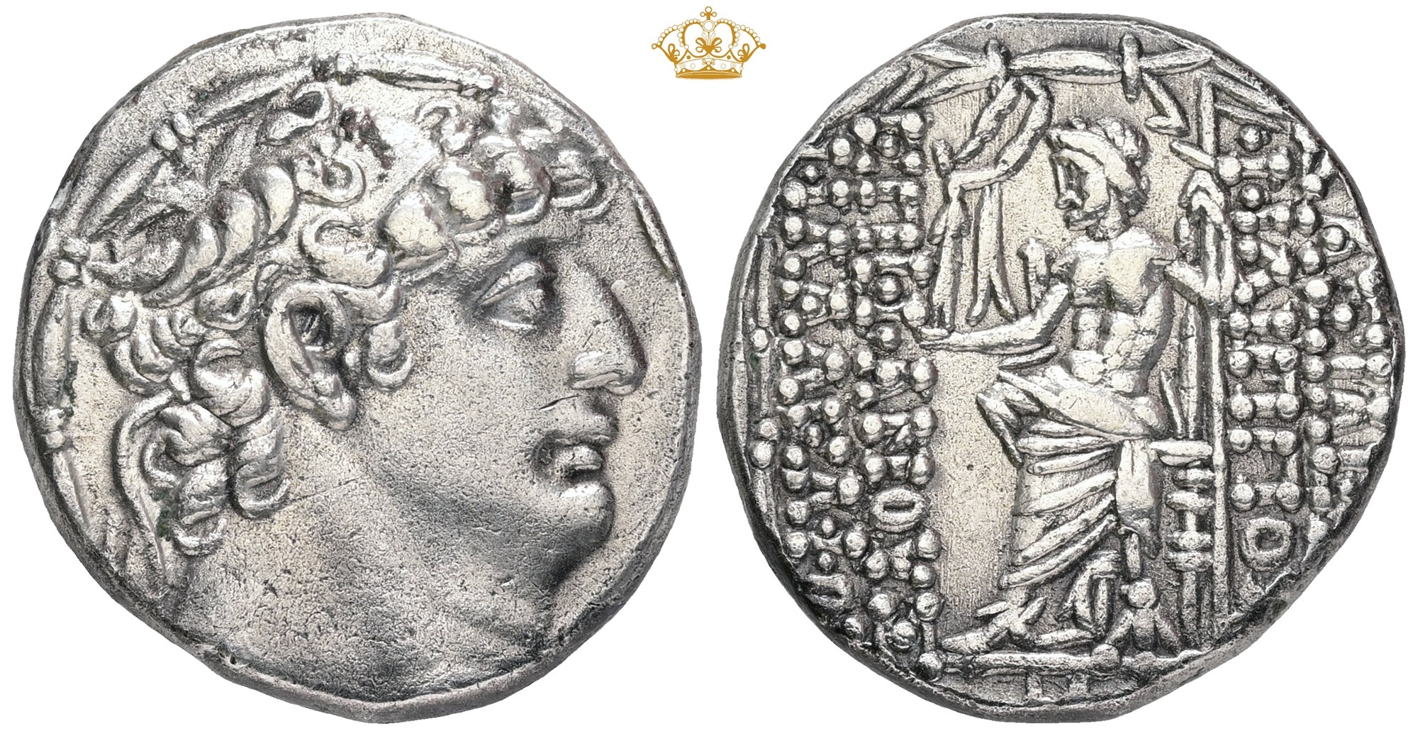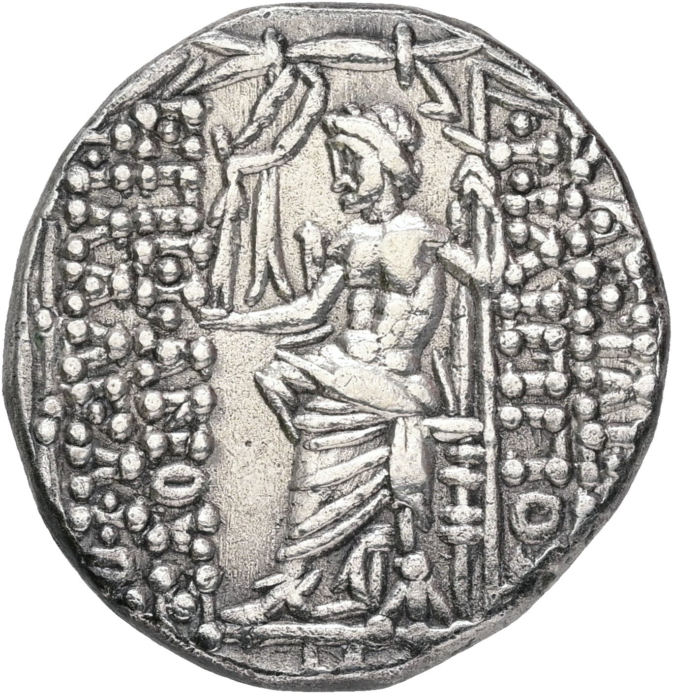 Tetradrachm. Zeus Nikephoros seated, holding sceptre. Cleaned.