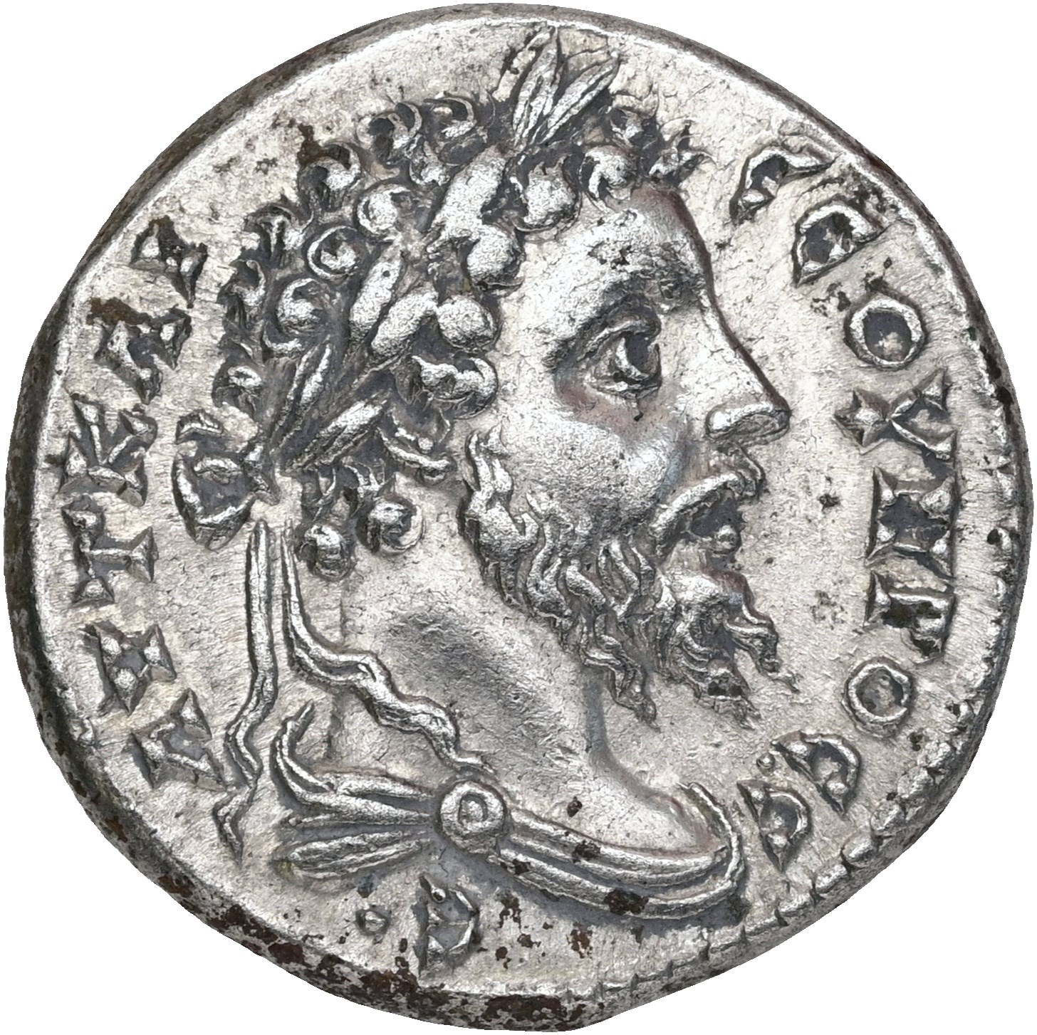 BI Tetradrachm, circa 205-207. Laureate and cuirassed bust / Eagle standing facing. Lightly cleaned.
