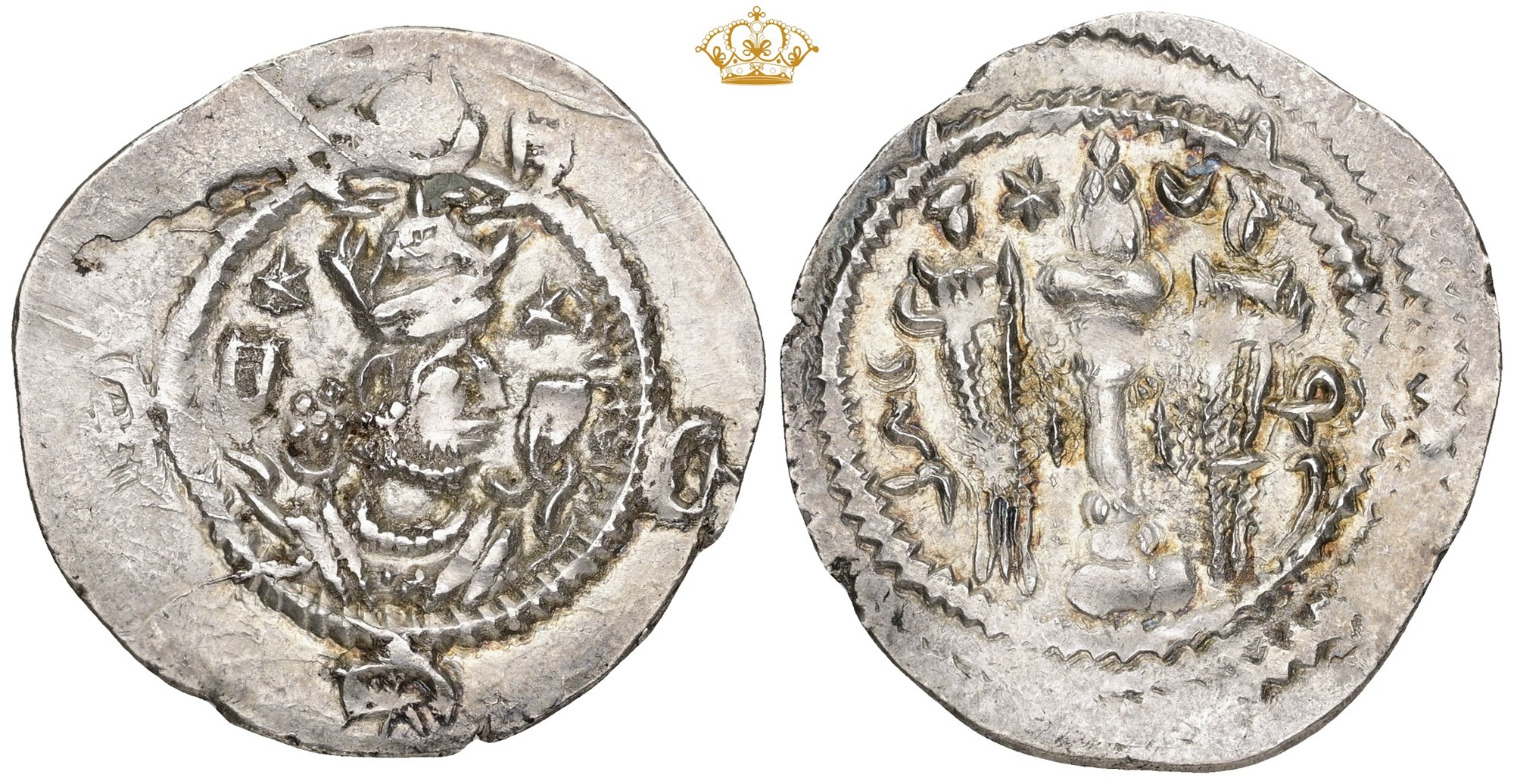 Drachm, year 40. Crowned bust right / Fire altar; attendants flanking.