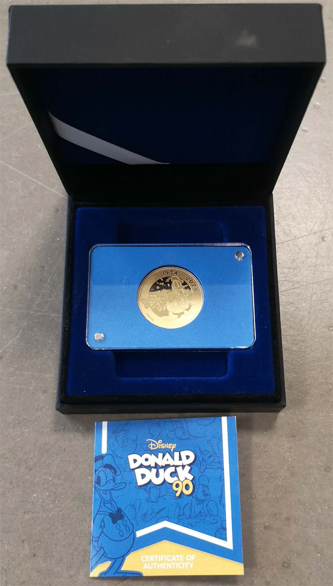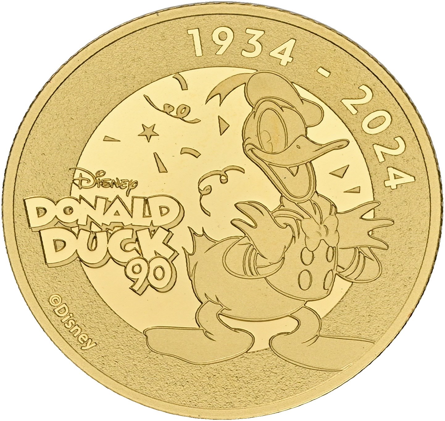 25 Dollars 2024, Disney, Donald Duck, 90th anniversary, Au (999/1000), 7.78 g, in box and with certificate.