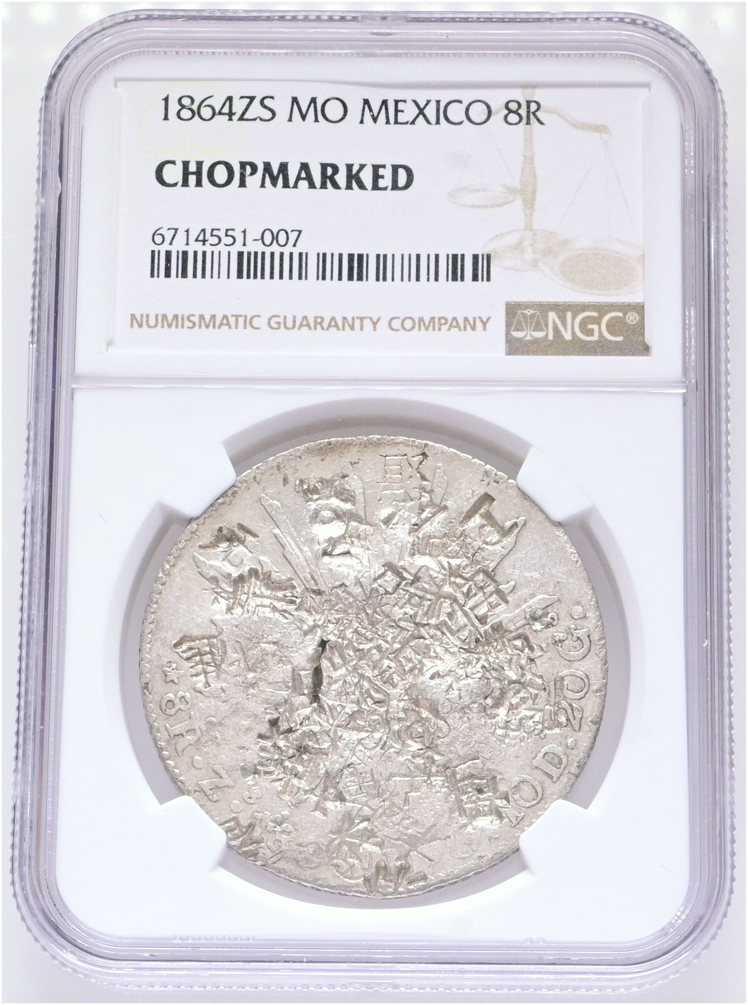 8 Reales 1864 Zs Mo, NGC chopmarked