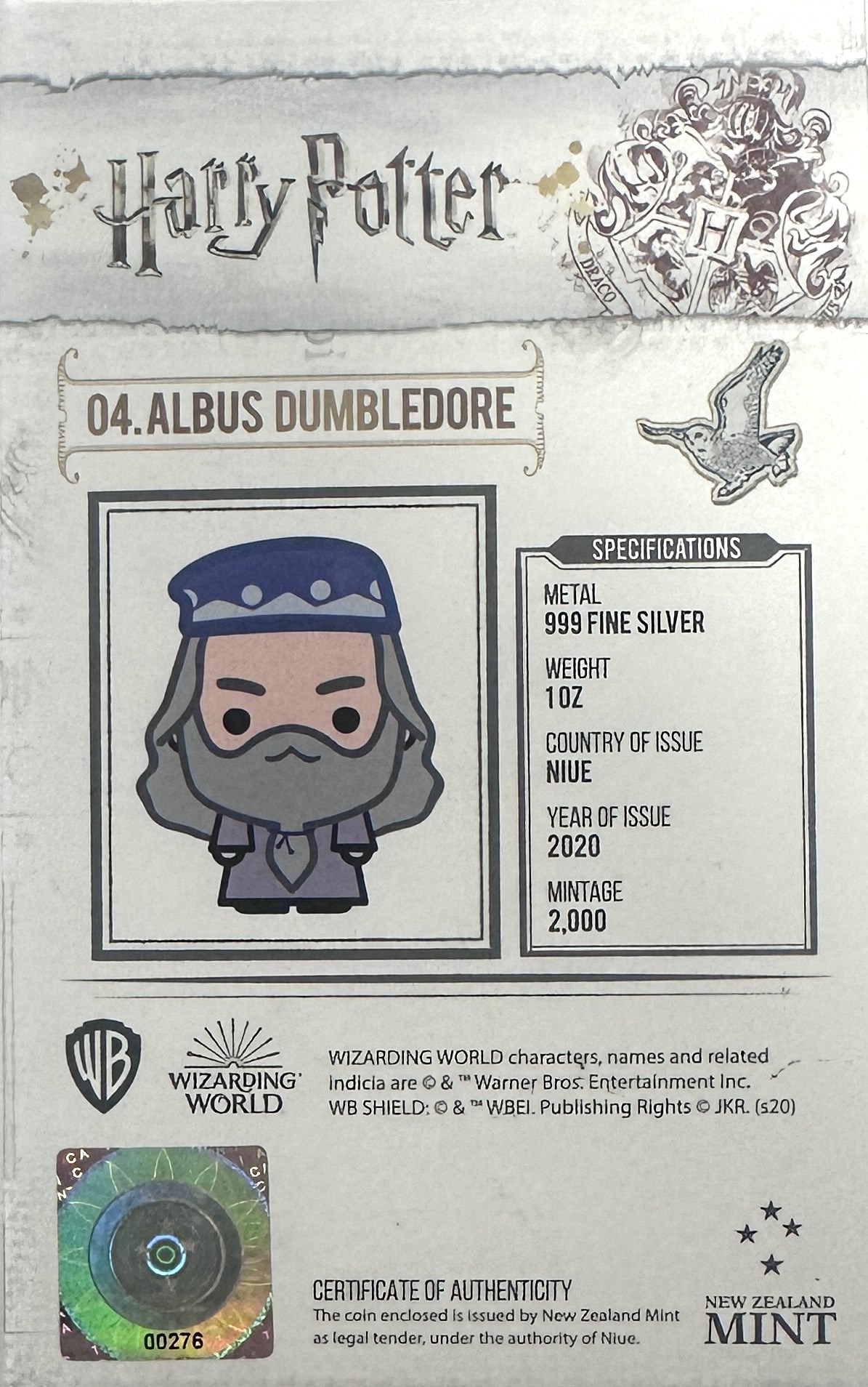 2 Dollars 2020, Albus Dumbledore, Harry Potter, Ag (999/1000, 1 oz, in original packaging.