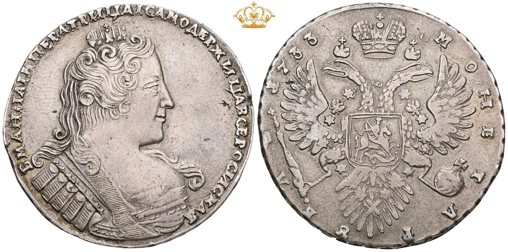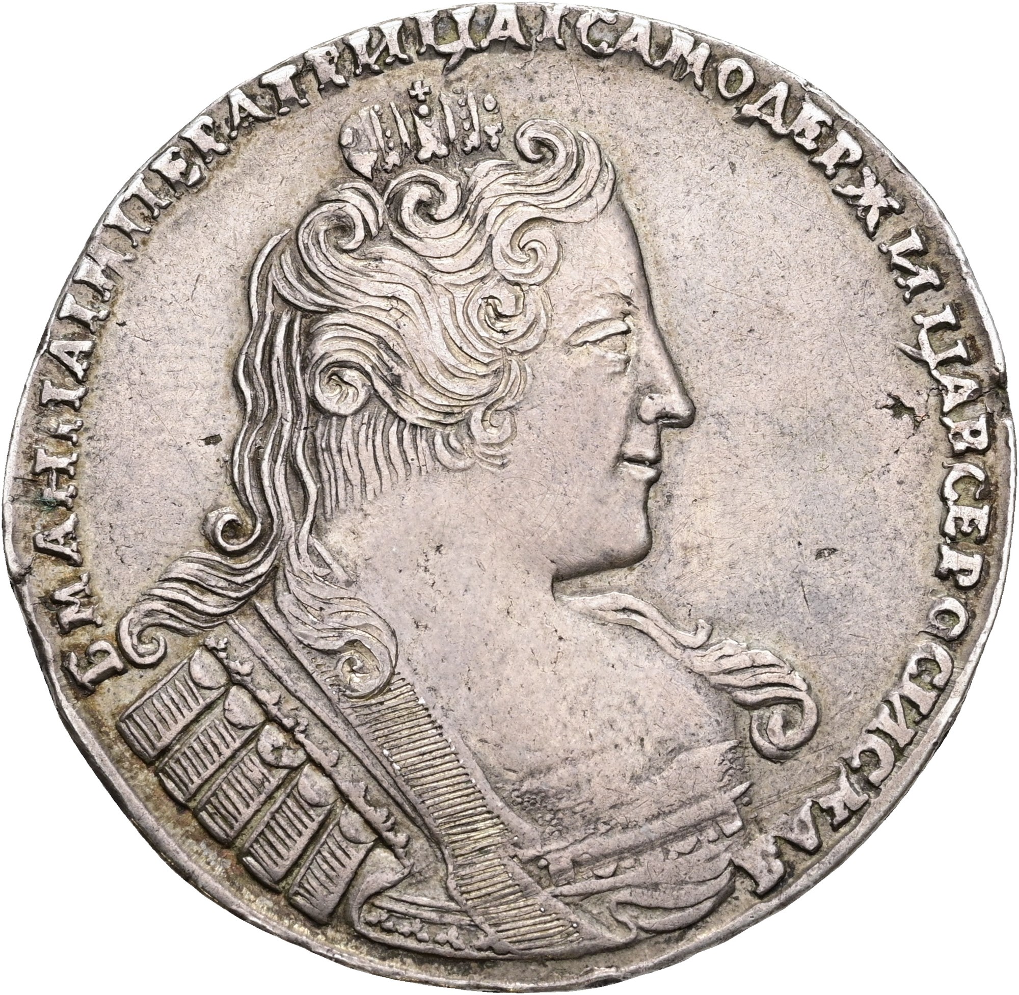 Rouble 1733, planchet flaws.