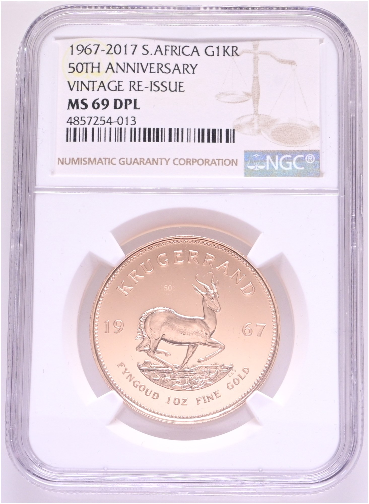 Krugerrand 2017, 50th anniversary of the Krügerrand, vintage re-issue 1967, Au (917/1000), 33.93 g - NGC MS 69 DPL.