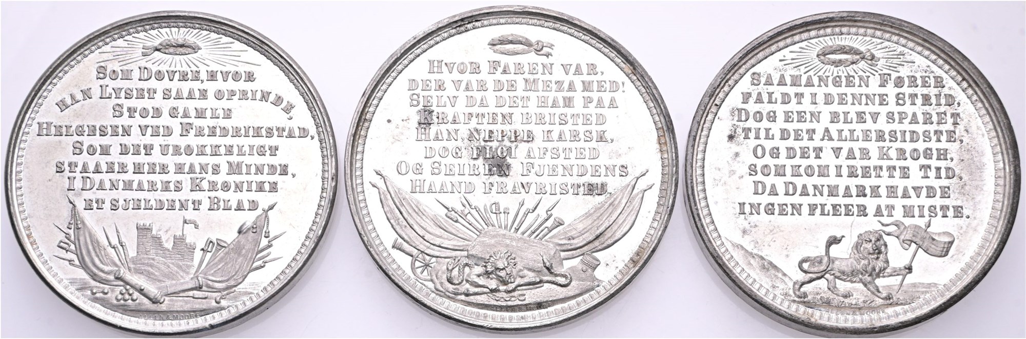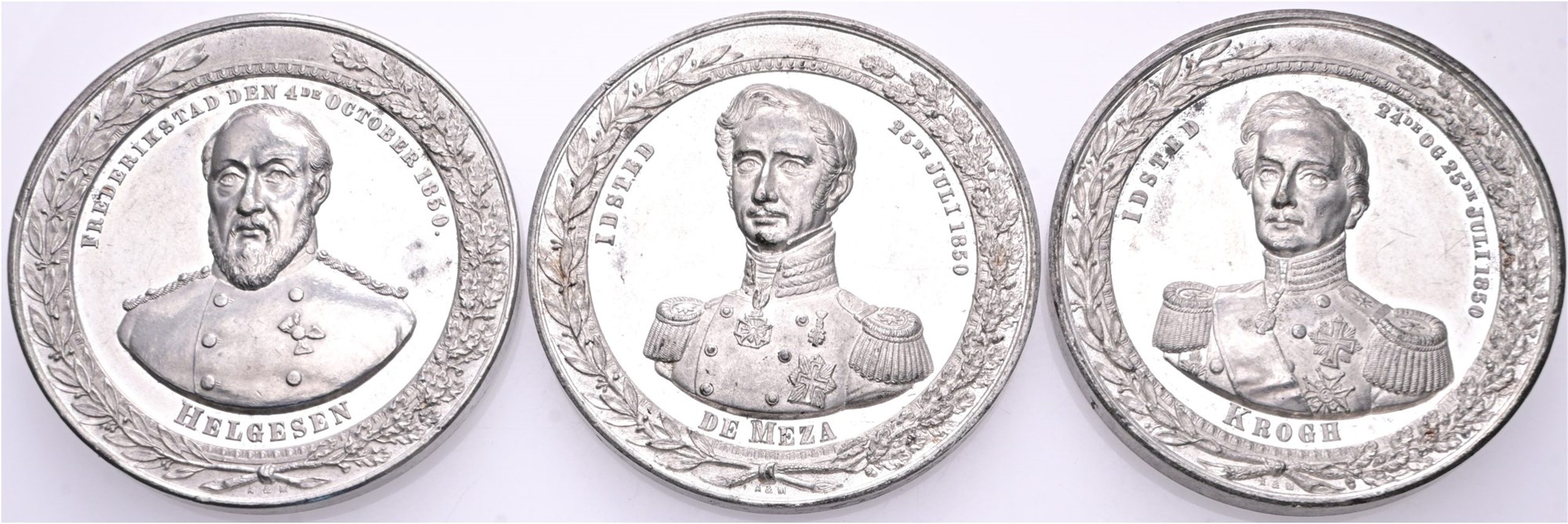 Helgesen, Hans, 1850, Sn, 45 mm, 29,09 g; Krogh, Gerhard Christoph, 1850, Sn, 45 mm, 27,96 g; Meza, Christian Julius de, 1850, Sn, 45 mm, 27,58 g. (3)