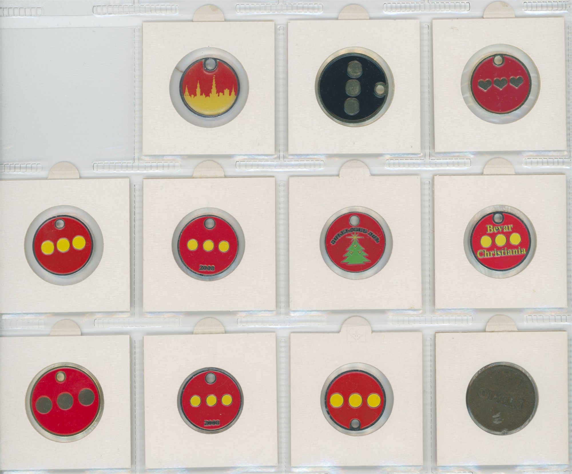 Samling vognpoletter, 10 stk. forskellige, samt token fra Nemoland. (11)