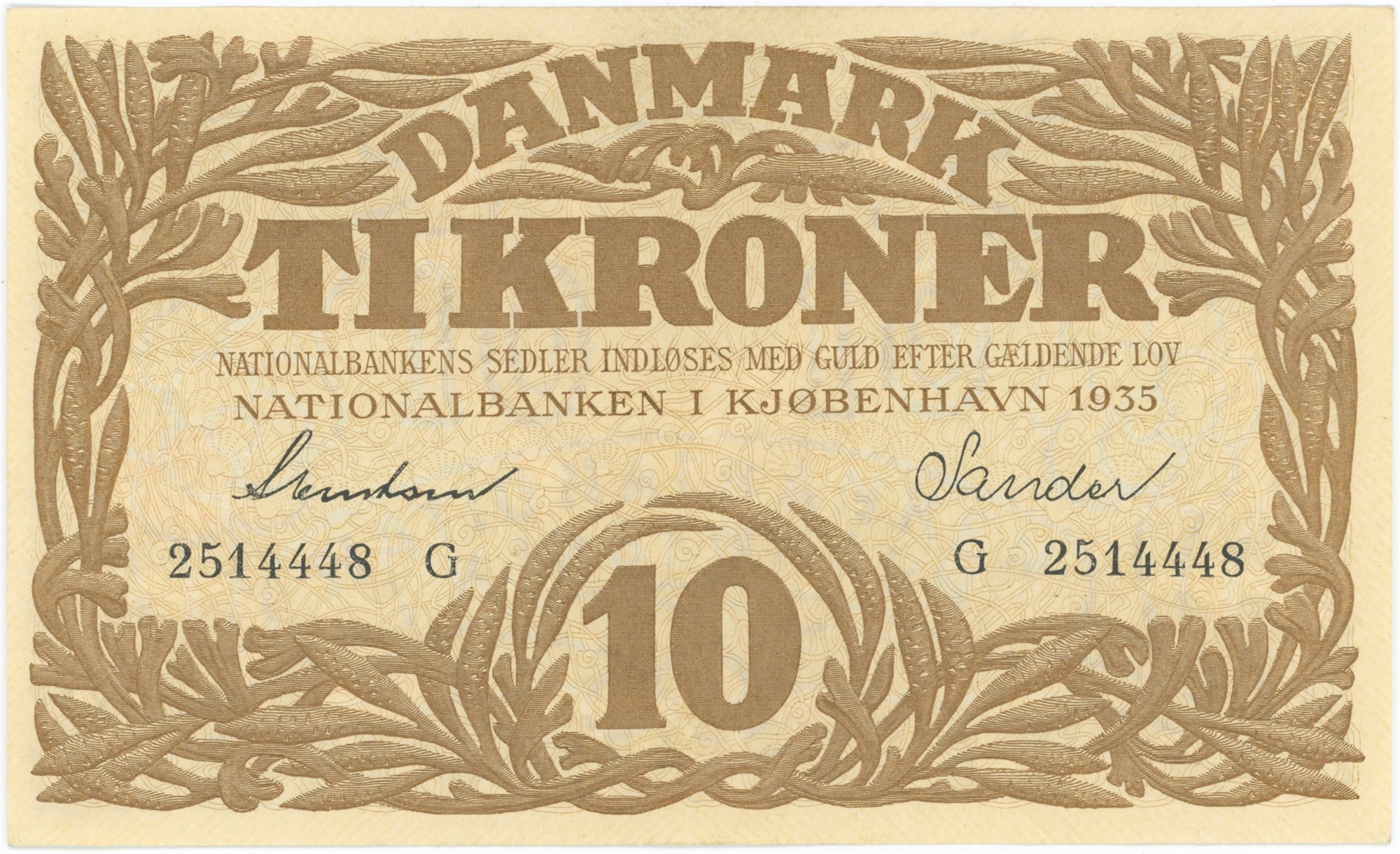 10 kroner 1935 G, nr. 2114448, Svendsen / Sander.