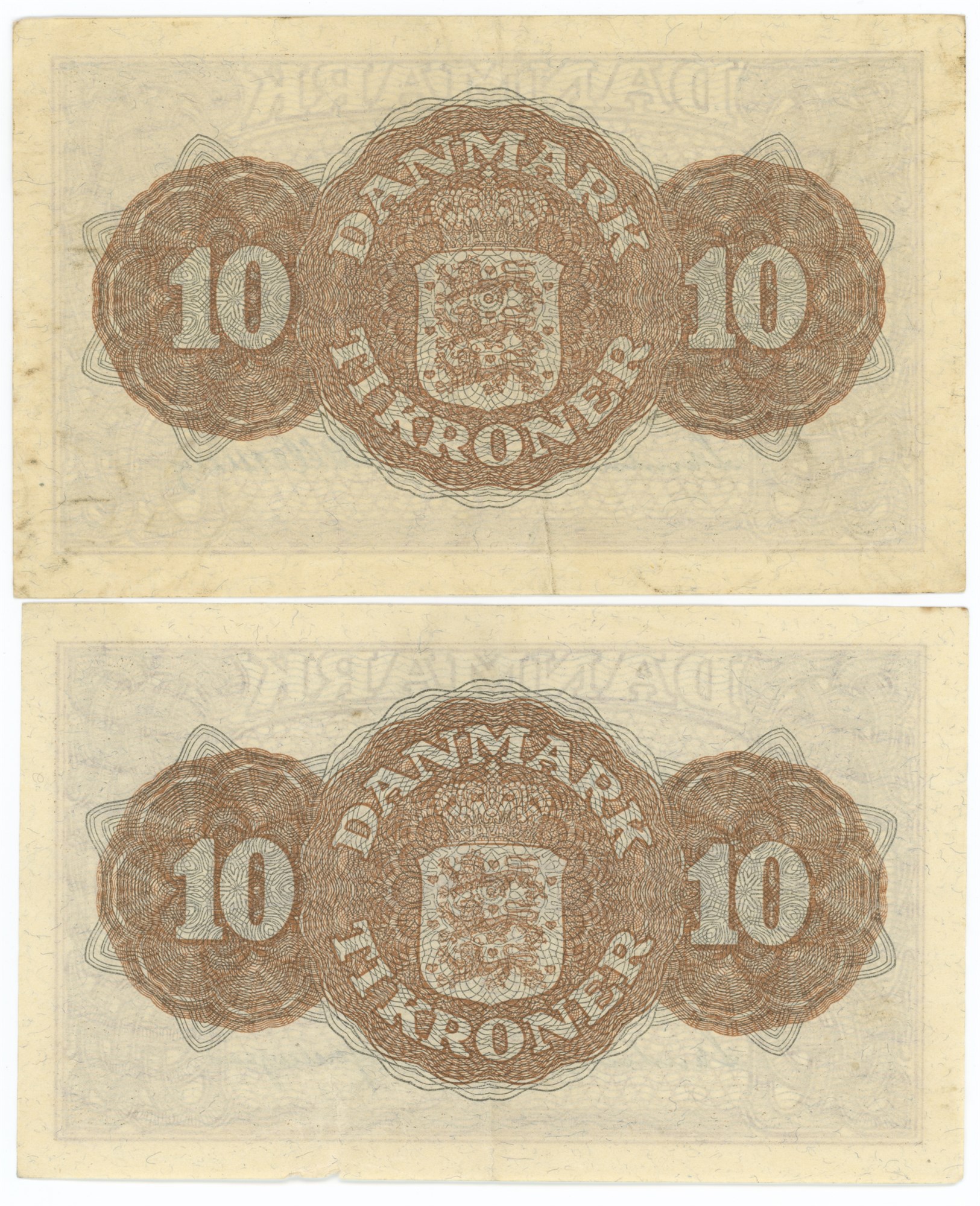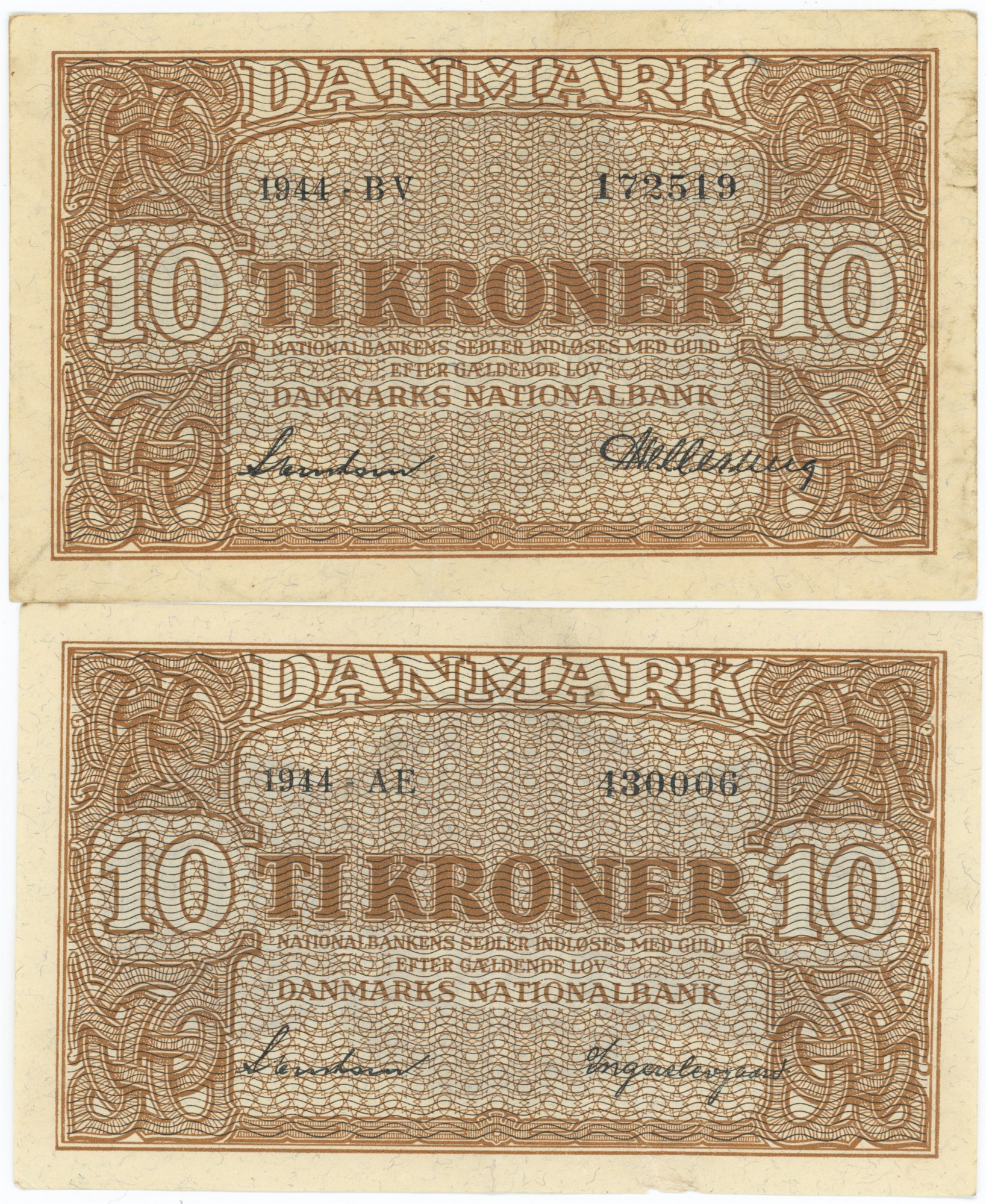 10 kroner 1944 AE samt 10 kroner 1944 NV. (2)