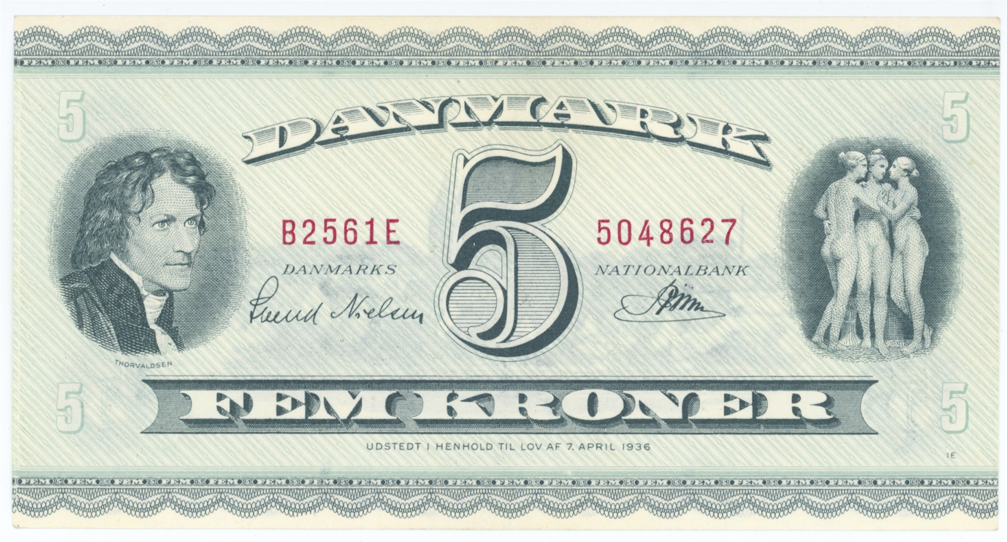 5 kroner 1956 B2, nr. 5048627, Svend Nielsen / Riim