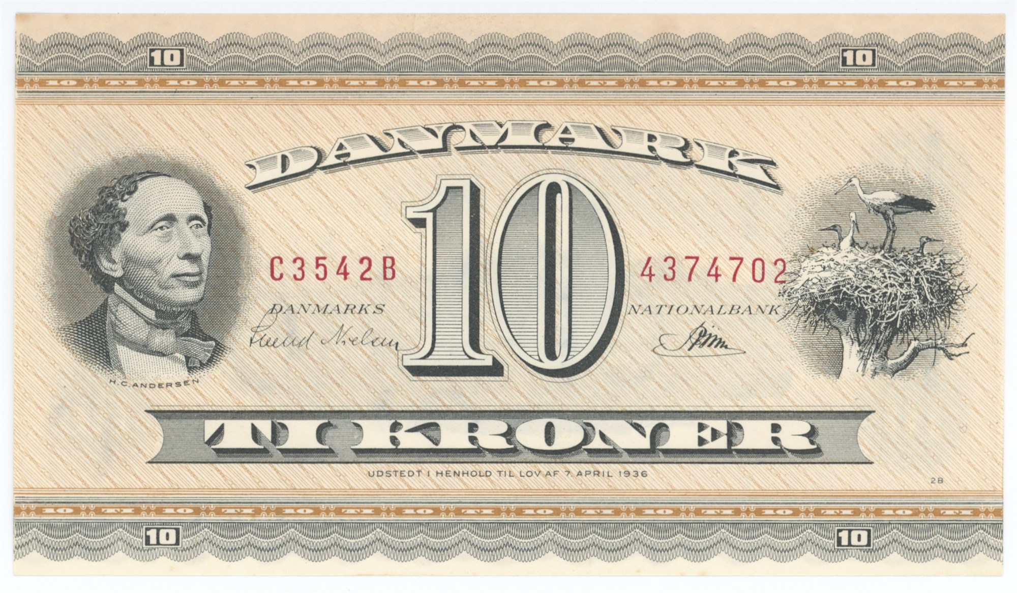 10 kroner 1954 C3, nr. 4374702, Svend Nielsen / Riim