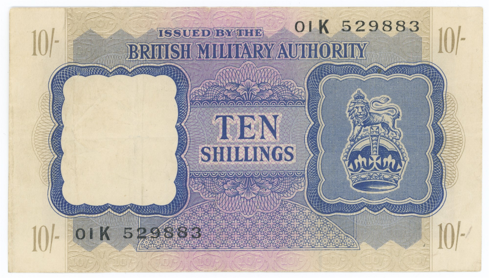 10 Shillings 1943, no. 01K 529883.