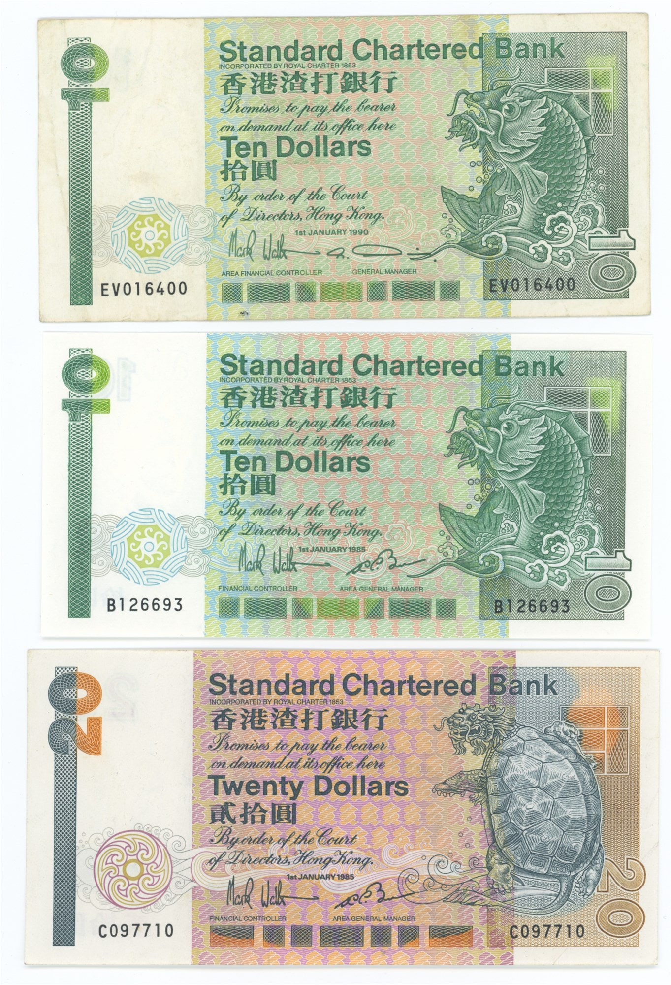 10 Dollars 1985, 1990; 20 Dollars 1985. (3)