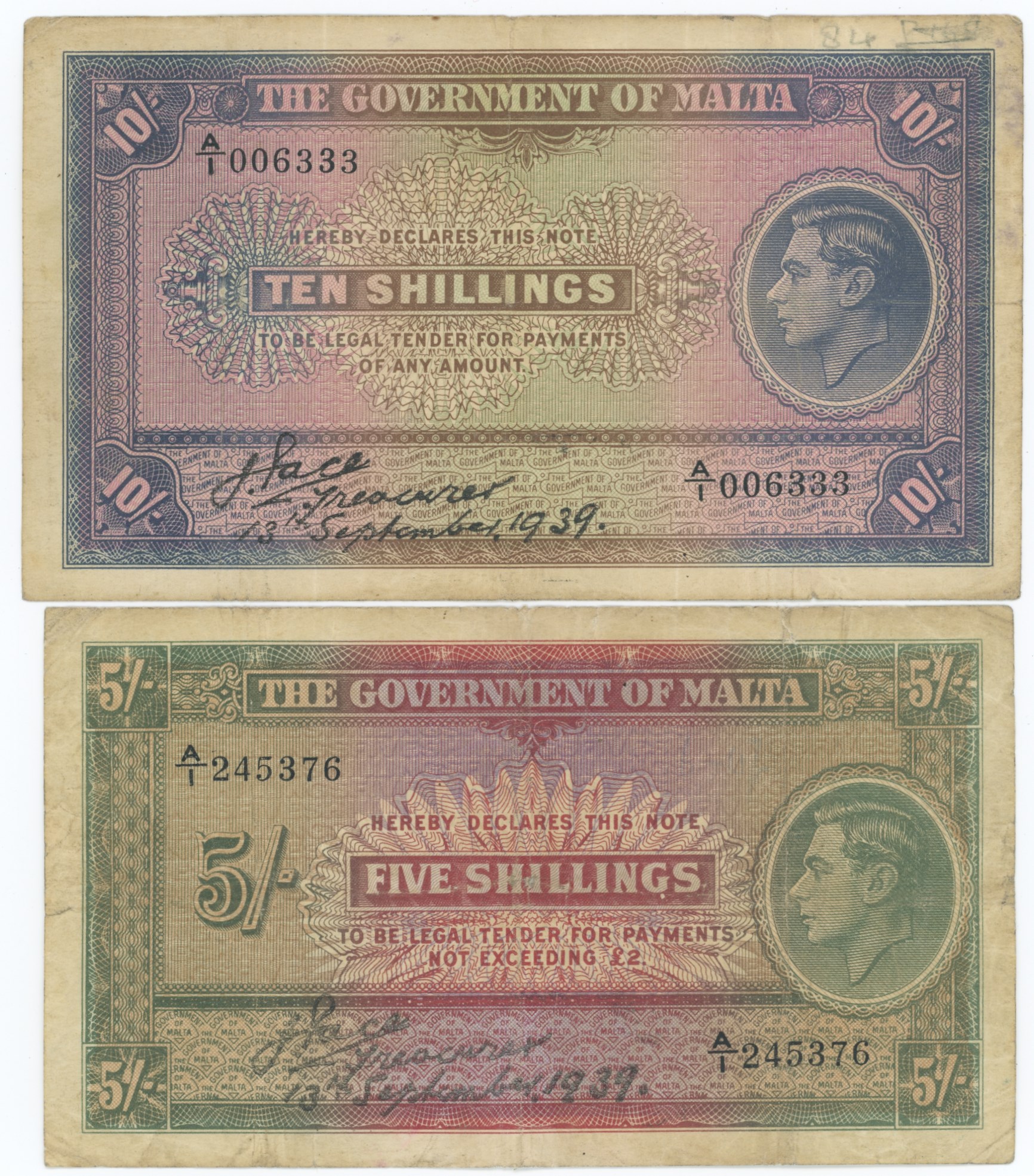 5 Shillings 1939, as well as 10 Shillings 1939. (2)
