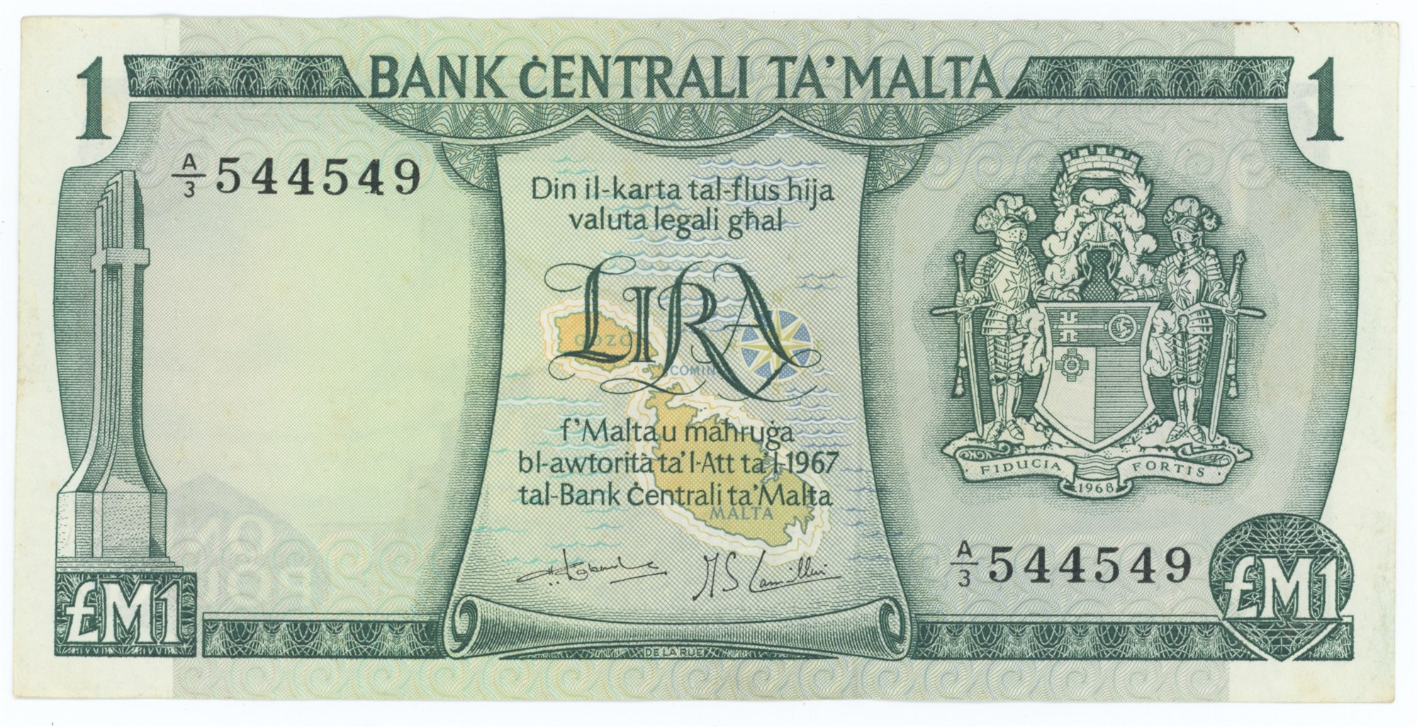 1 Lira 1967, 1973 ND Issue, no. A/3 544549.