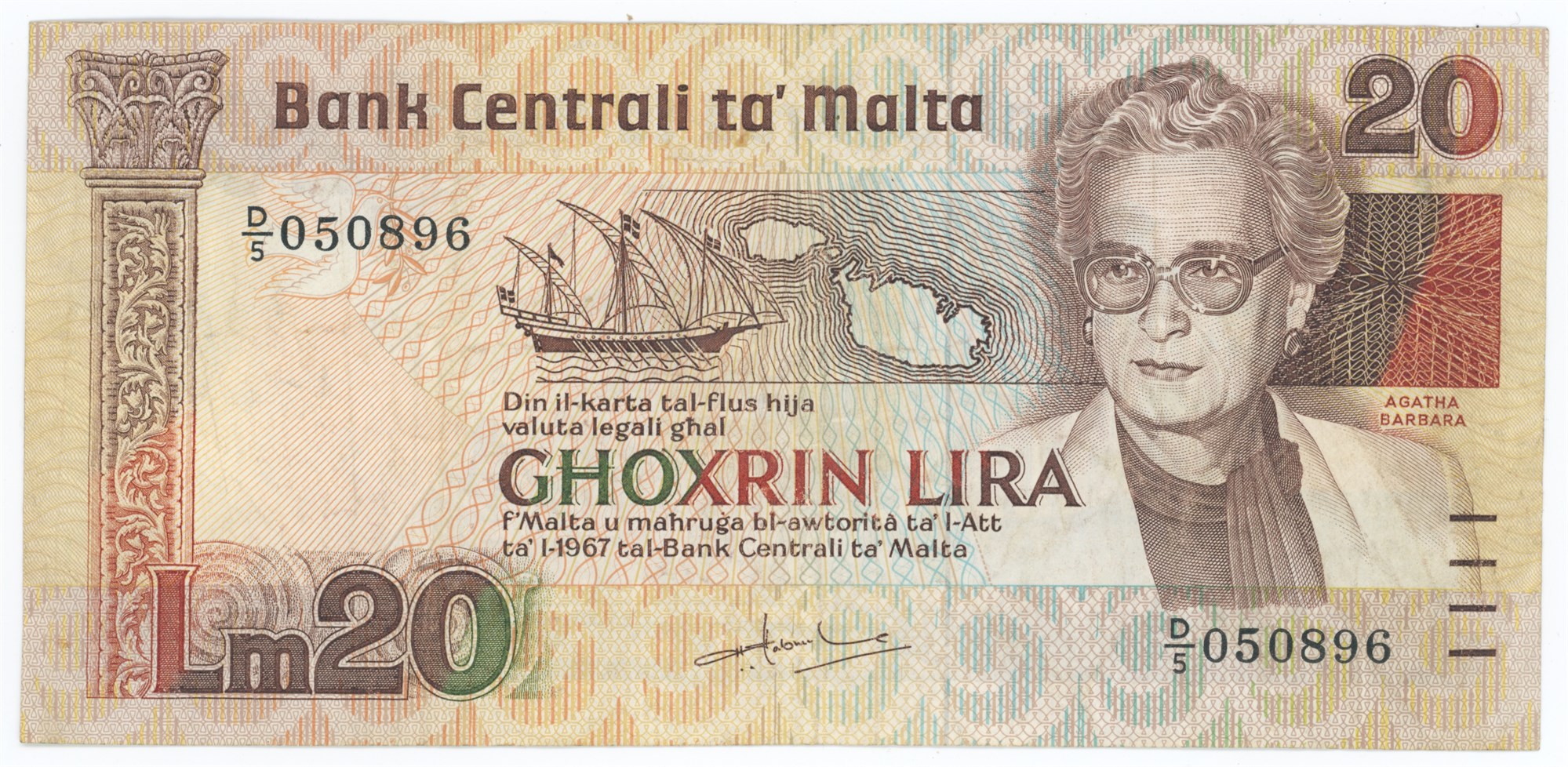 20 Liri 1986 ND Issue, no. D/5 050896.