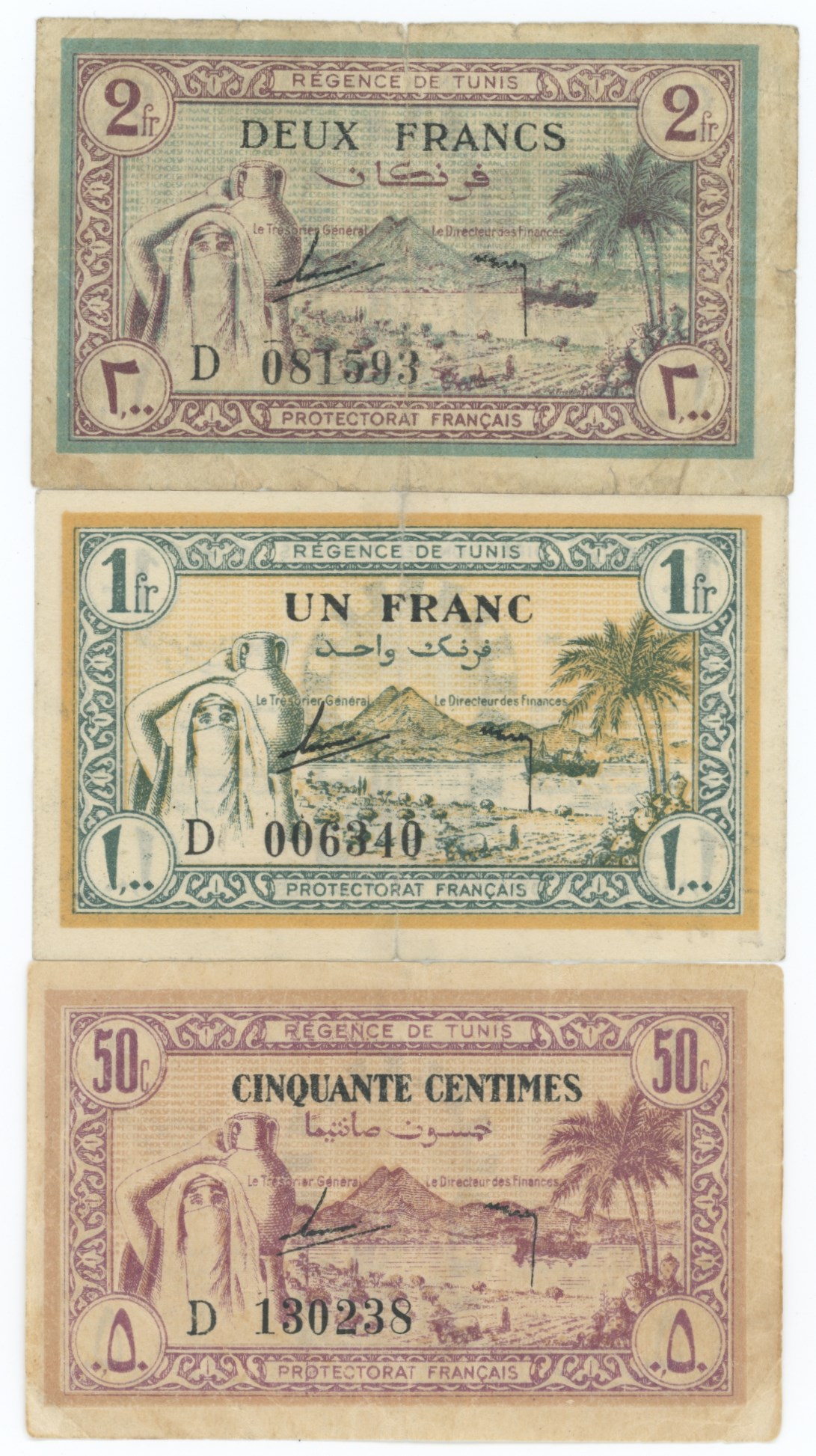 - 50 Centimes, 1 Franc, 2 Francs, 1943. (3) (17839207)