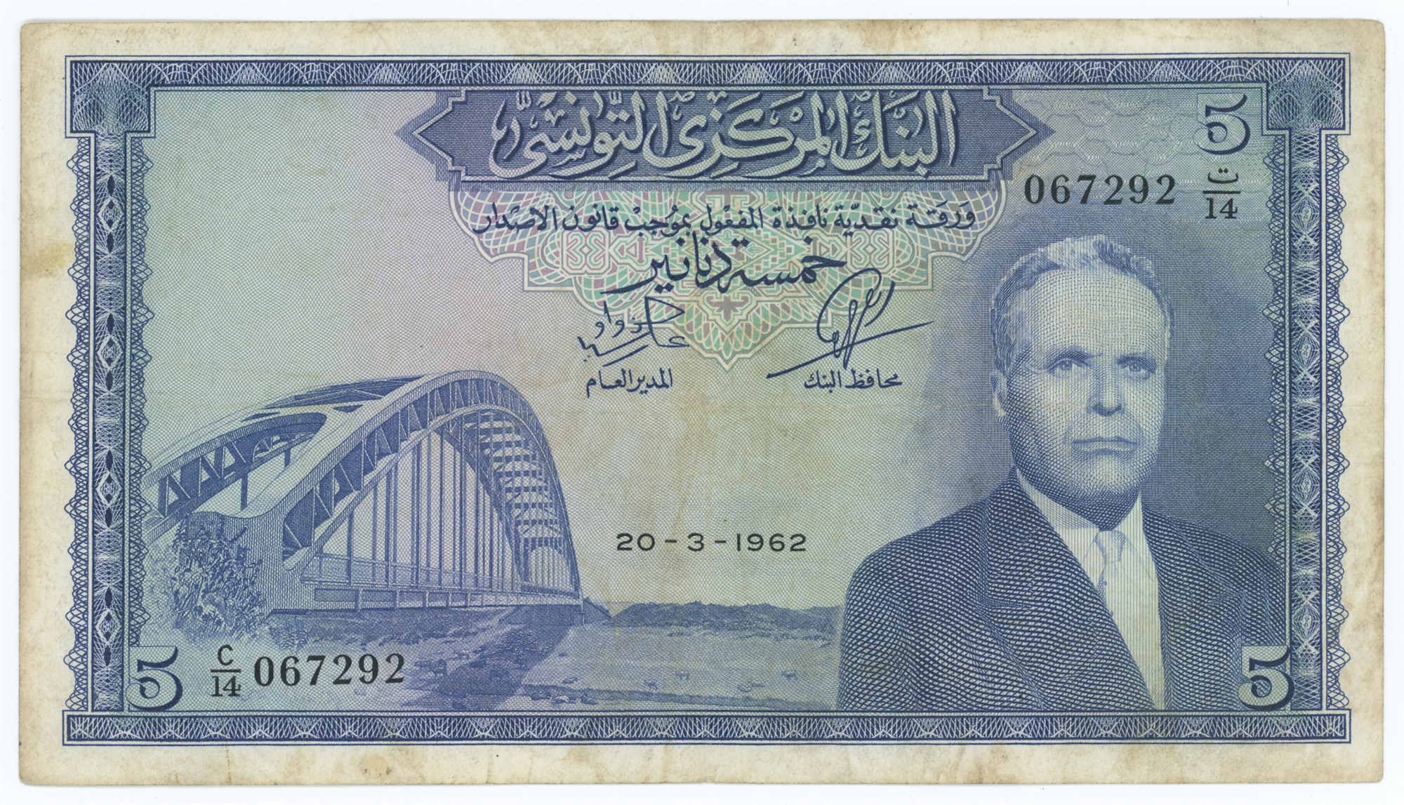 5 Dinars 1962, no. C/14 067292, Western numerals.