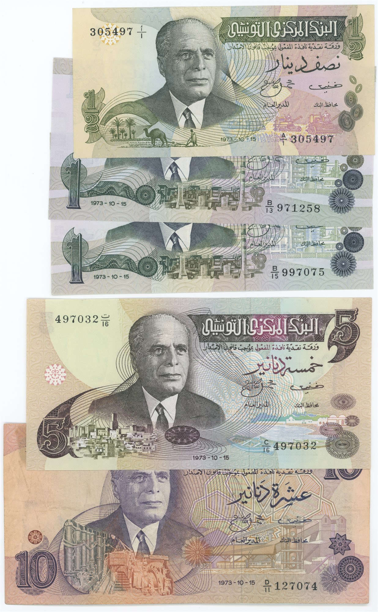 1/2, 1 (2 pcs.), 5, 10 Dinars 1973.