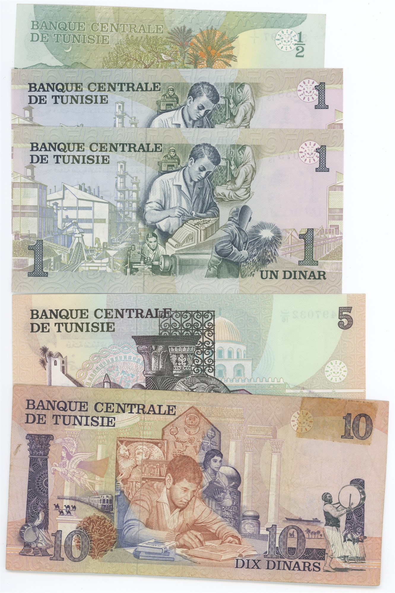 1/2, 1 (2 pcs.), 5, 10 Dinars 1973. (5)