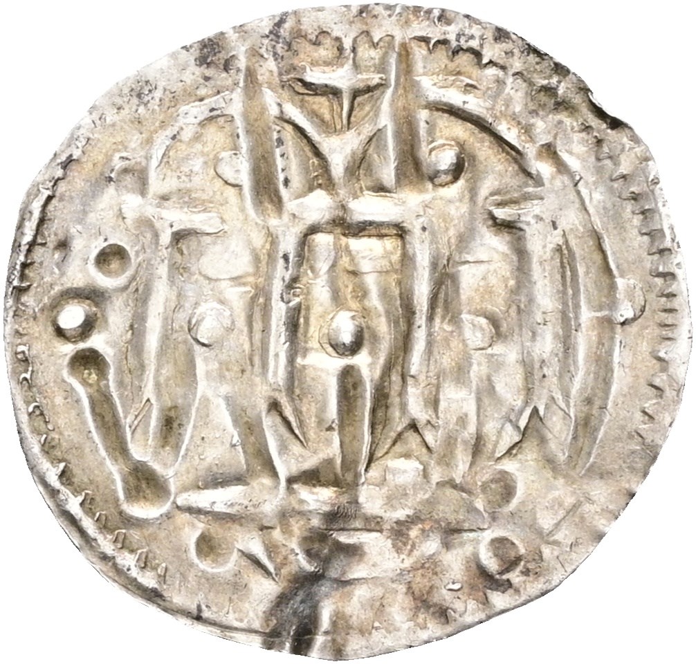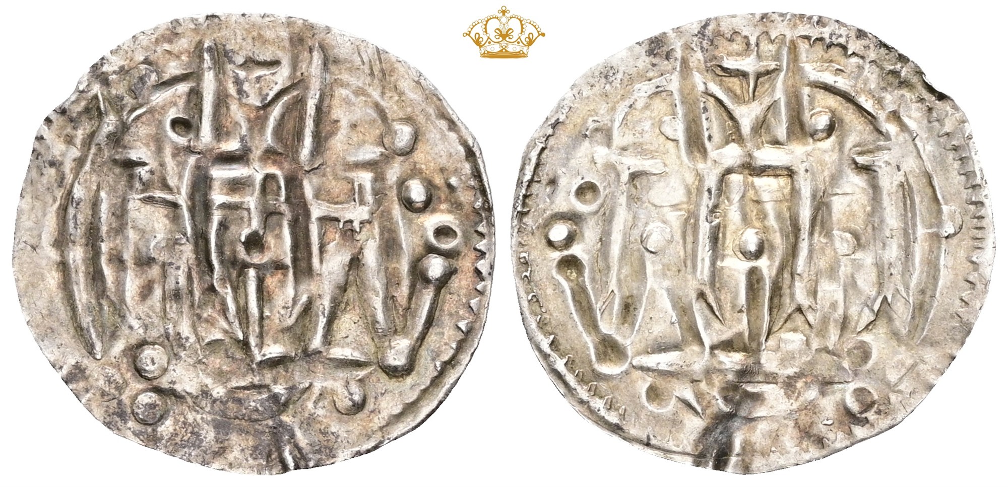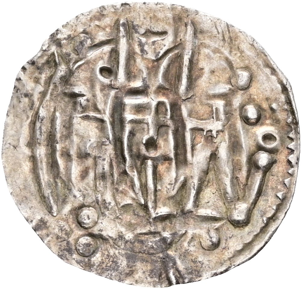 Halvbrakteat, Hedeby. Trykket. Fint fuldrandet eksemplar.