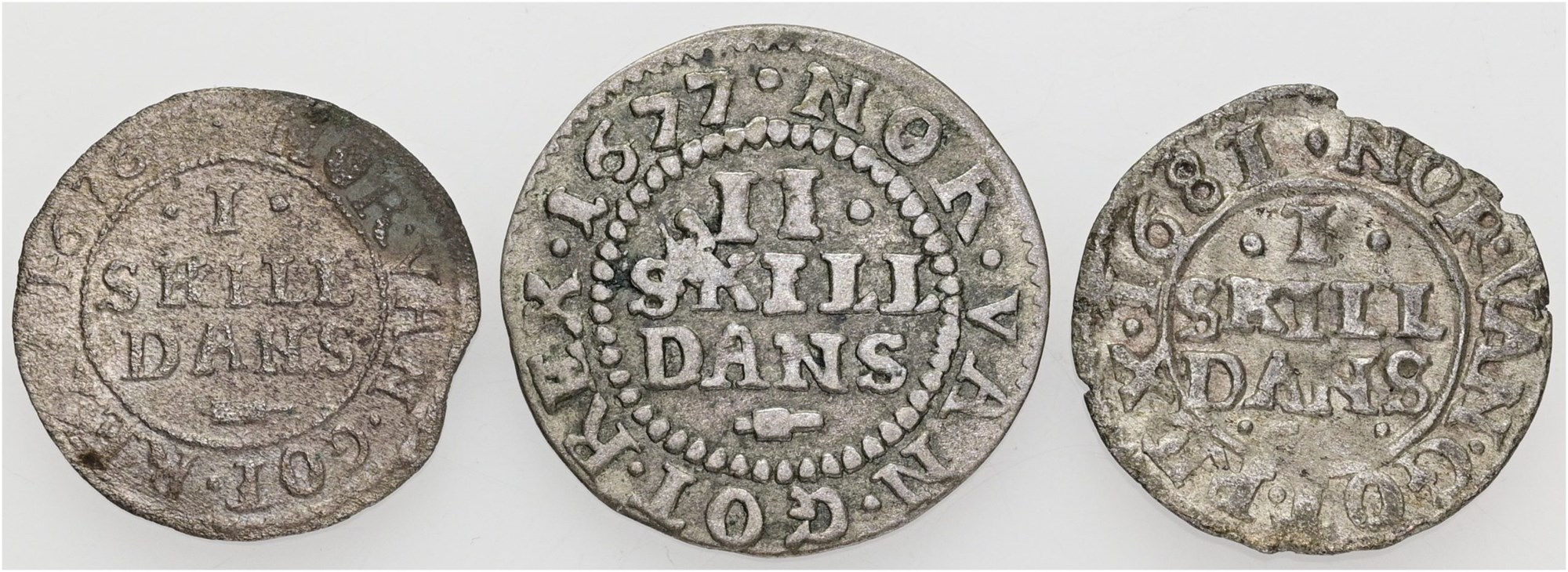 1 skilling 1676, 1681, 2 skilling 1677. (3)