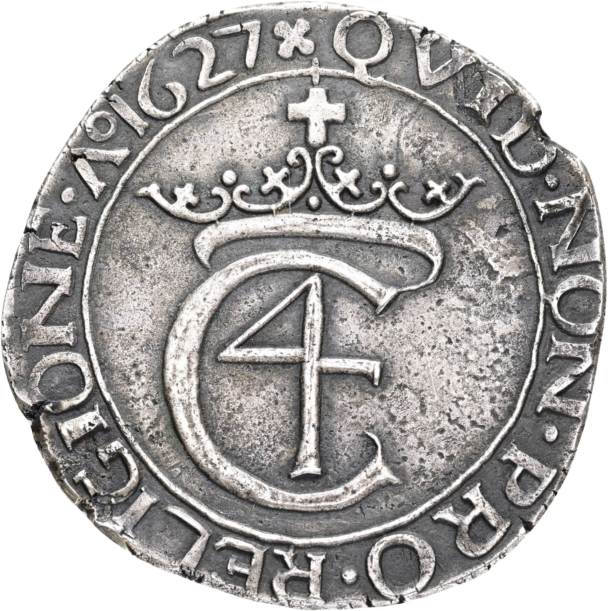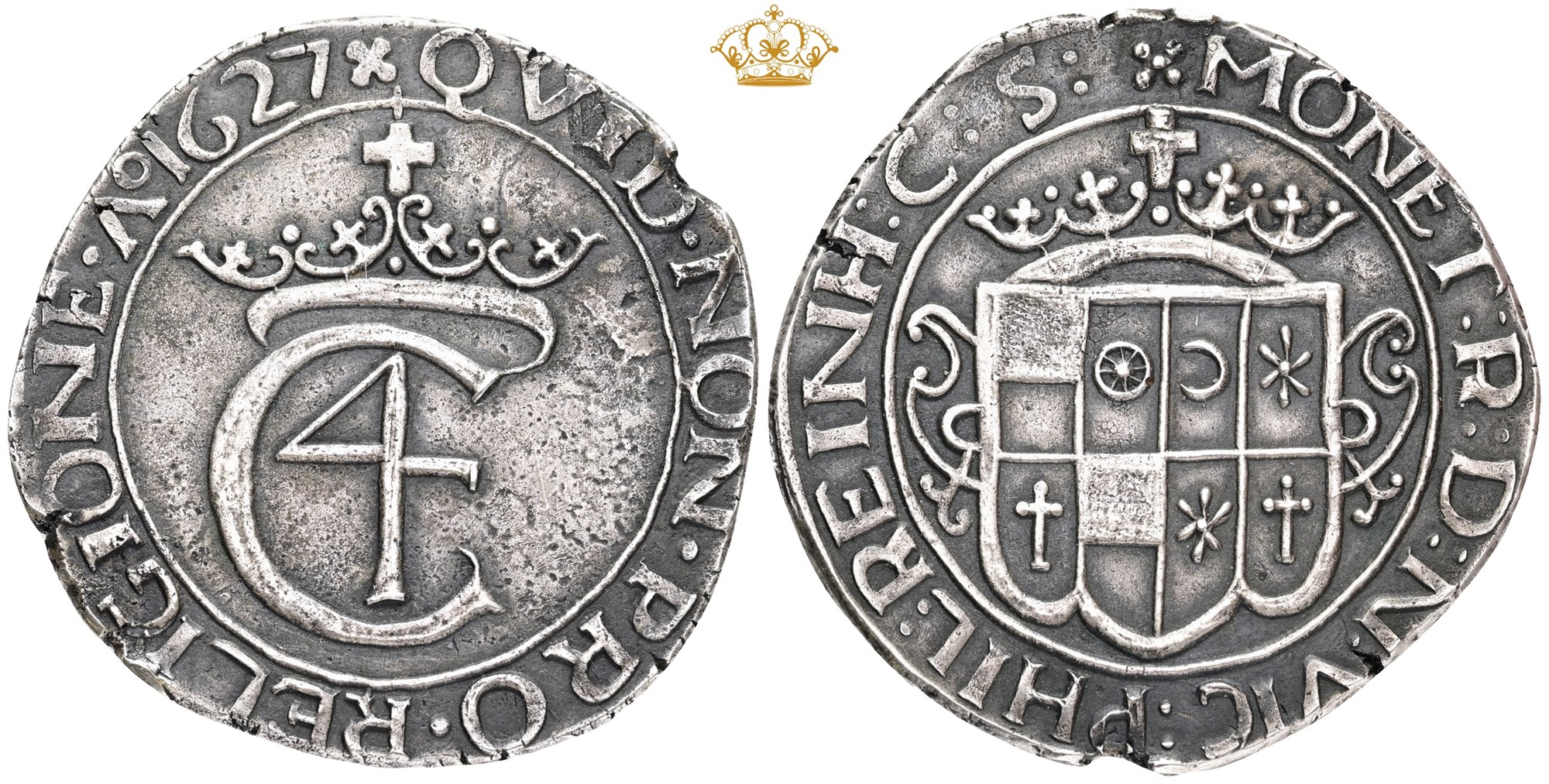 Speciedaler 1627. Motiv- og blanketmæssigt stærkt afvigende fra utvivlsomt ægte eksemplarer. Denne version er kendt i flere eksemplarer og fandtes senest i 1914 (omtalt af P. Joseph). Dette eksemplar er tidligere solgt som ægte, men vi anser det for fremstillet i 1800-1900-tallet.