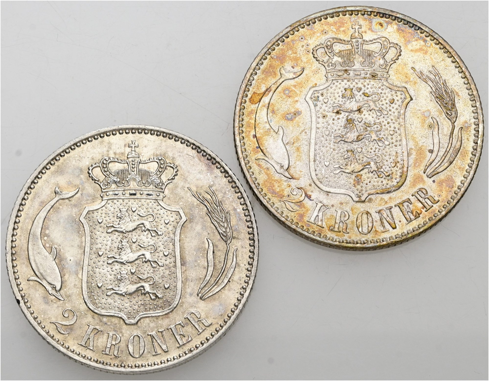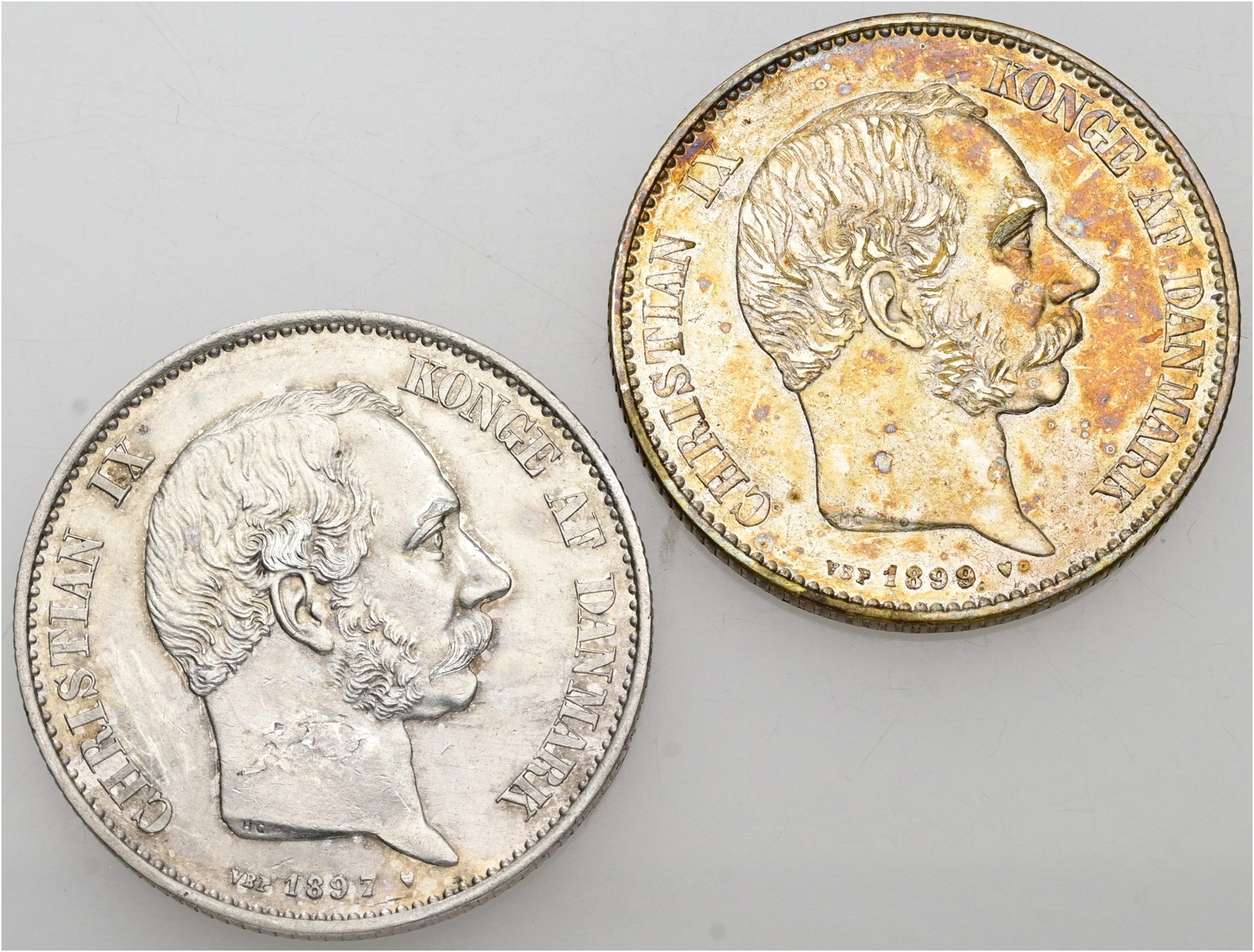 2 kroner 1897, 1899, opgraverede detaljer. (2)