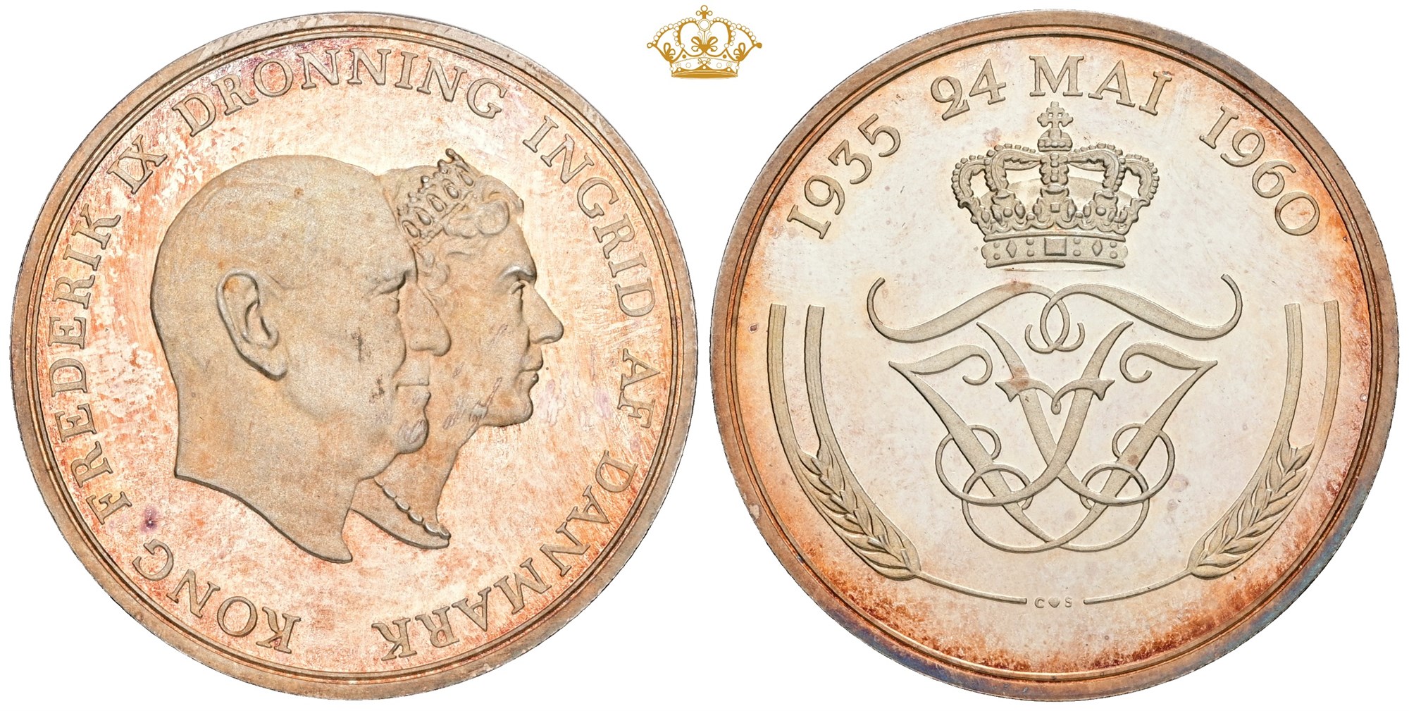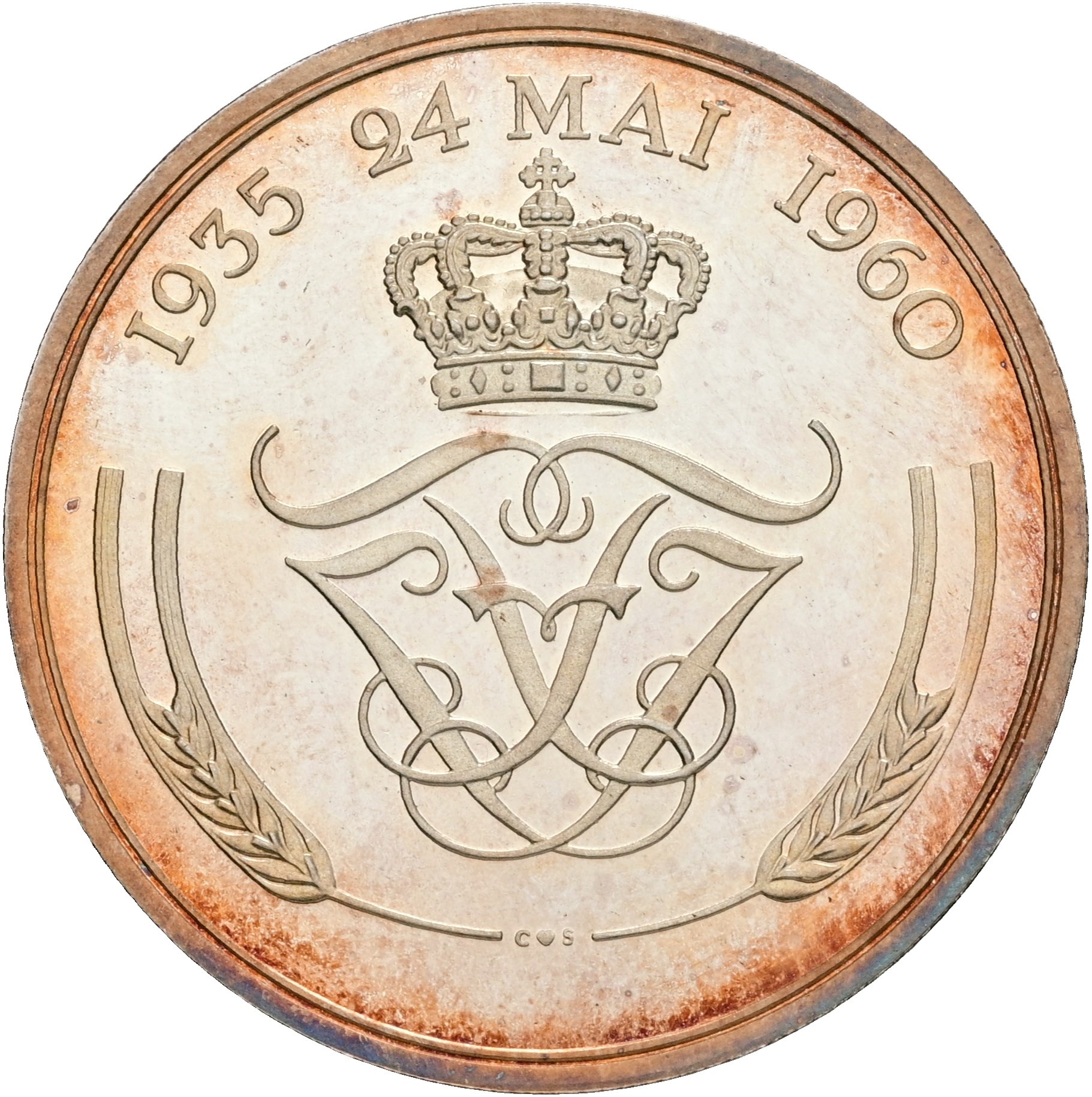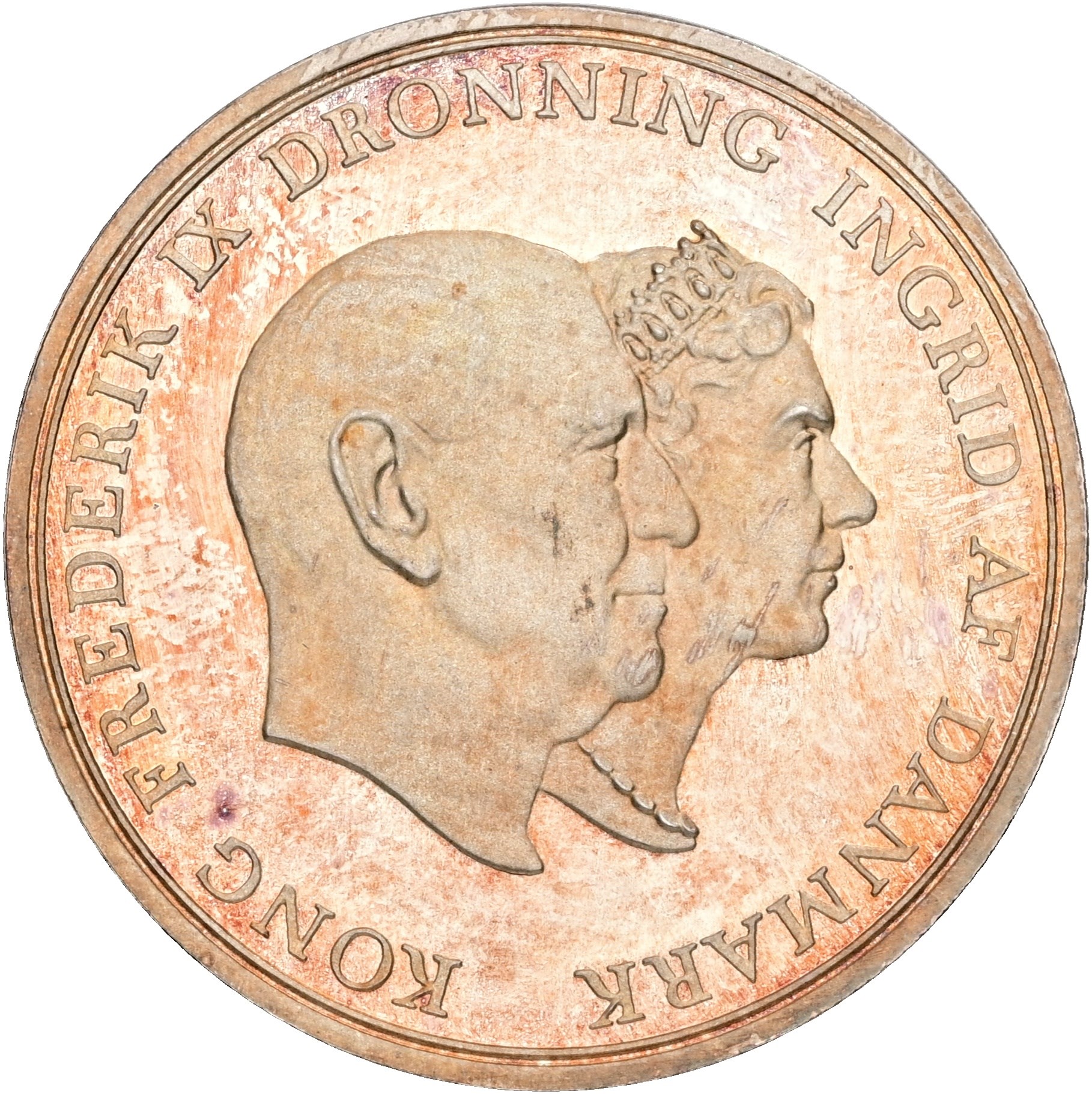 Ministereksemplar, (5 kroner) 1960, kongeparrets sølvbryllup, erindringsmønt, enkelte håndteringsspor.