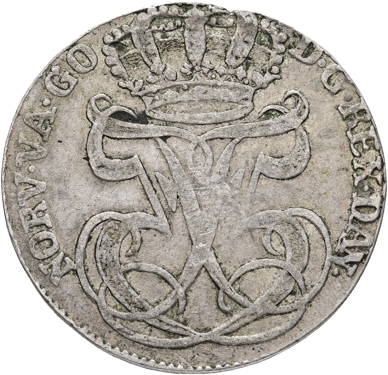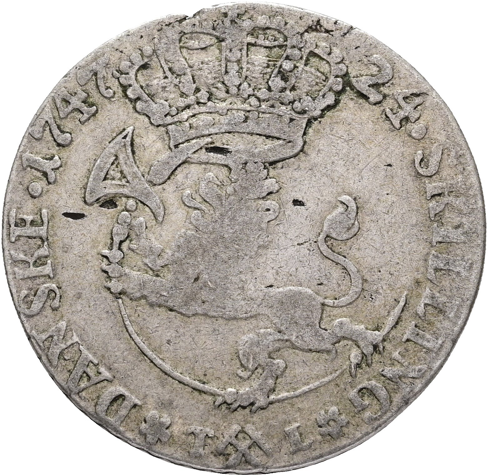 24 skilling 1747, delvist fladpræg, blanketfejl i rand.