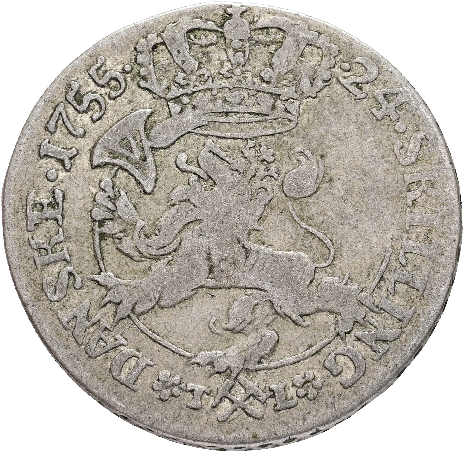 24 skilling 1755 , delvist fladpræg.