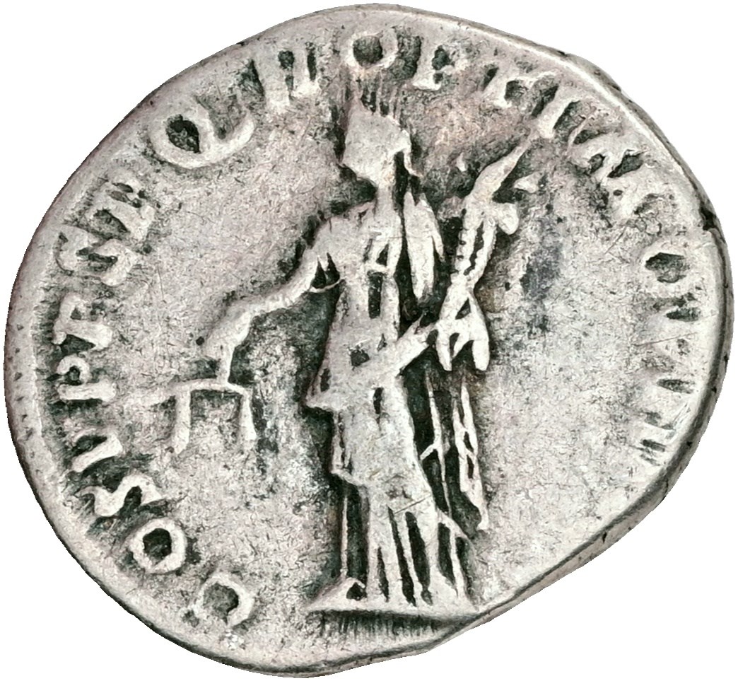 Denarius, c. 107-108. Rome. IMP TRAIANO AVG GER DAC P M TR P, laureate head of Trajan to right, with slight drapery on his left shoulder. Rev. COS V P P S P Q R OPTIMO PRINC, Aequitas standing front, head to left, holding scales in her right hand and cornucopiae in her left.