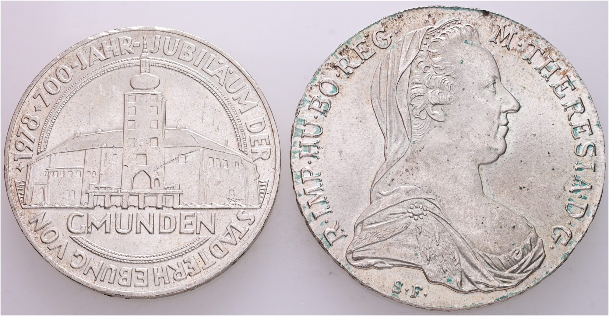 Maria Theresia, Taler 1780, restrike; 100 Schilling 1978, Gmunden. (2)