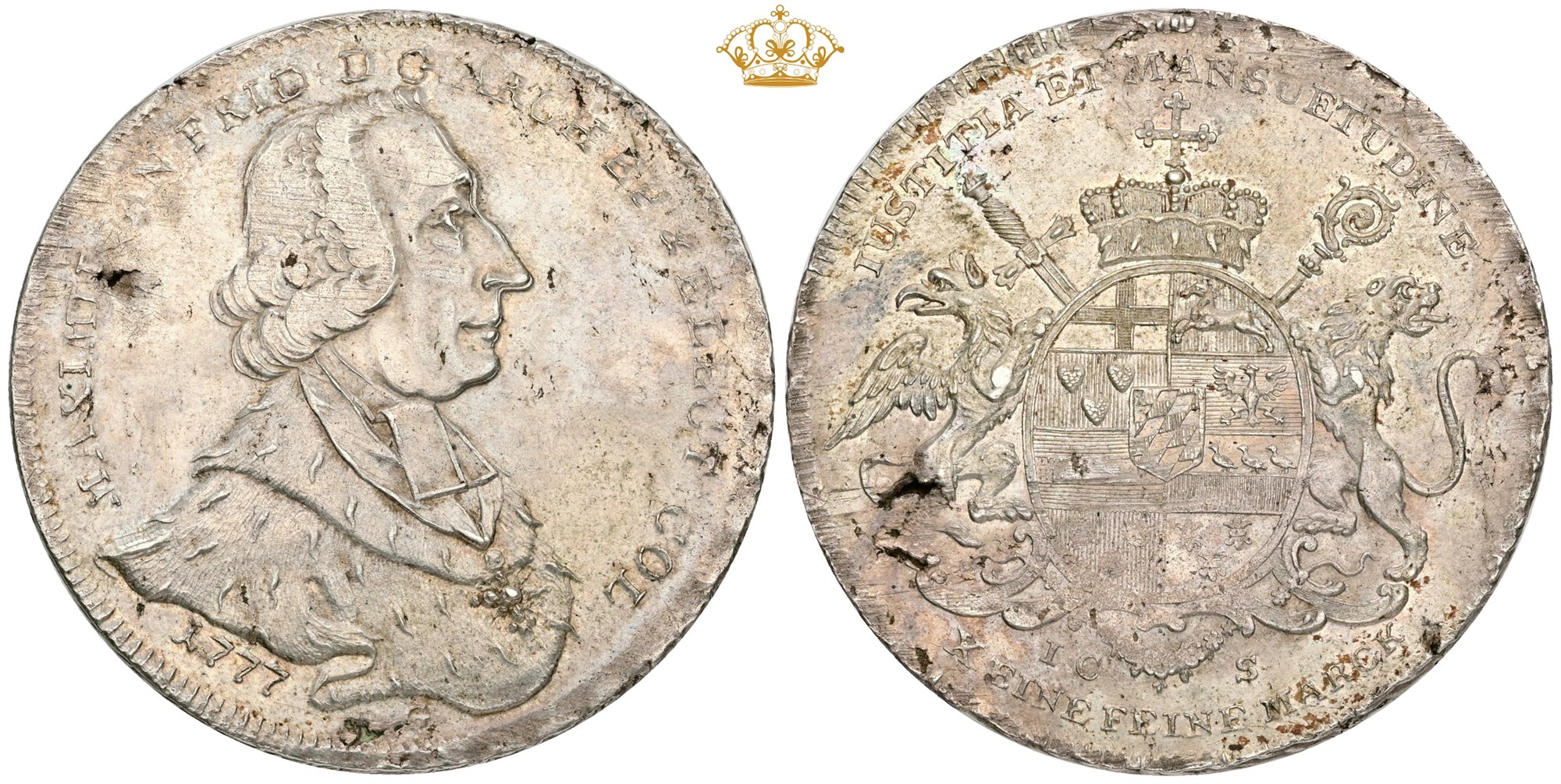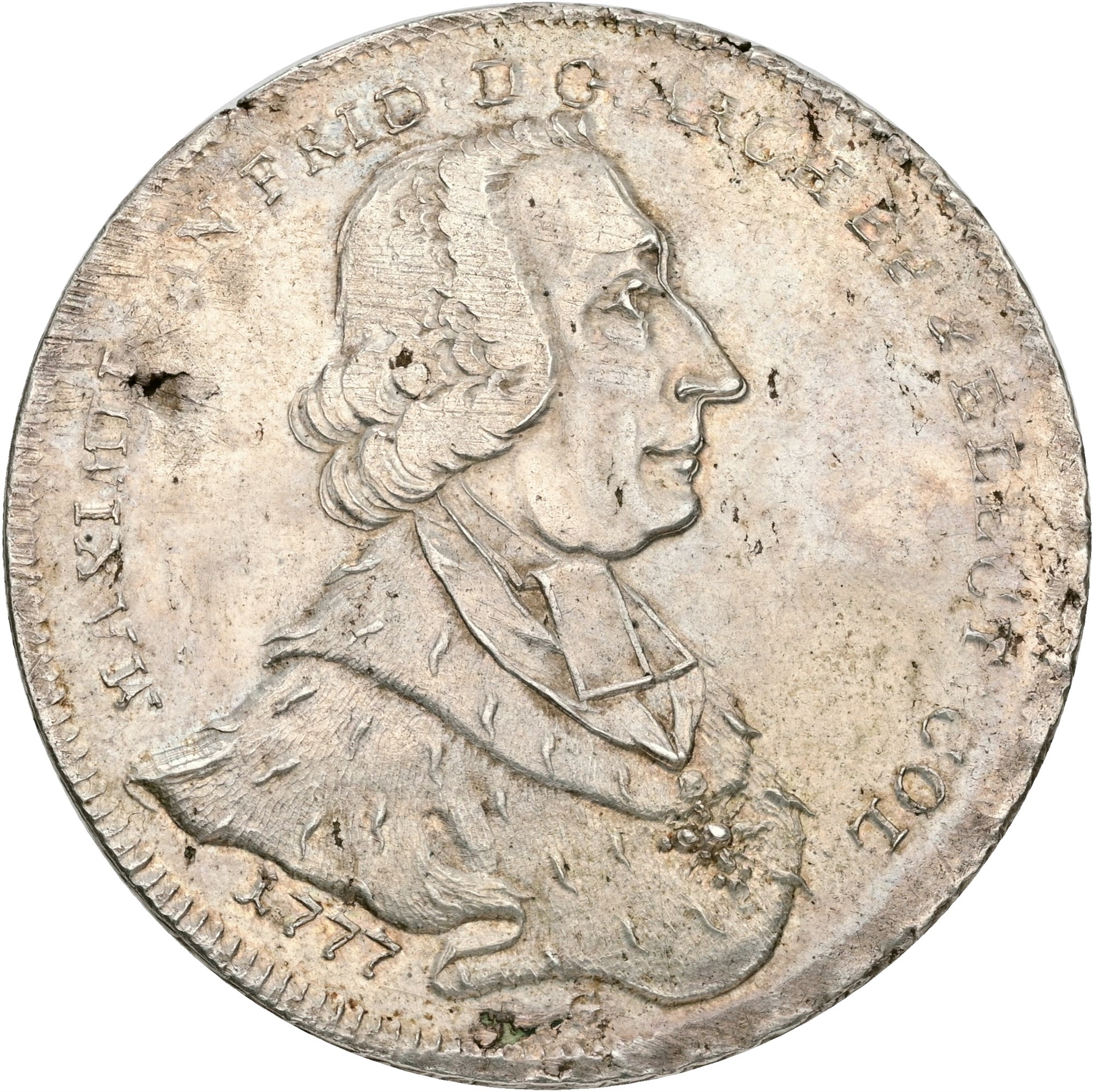 Konv.-Taler 1777, minor adjustment marks, flan flaws.