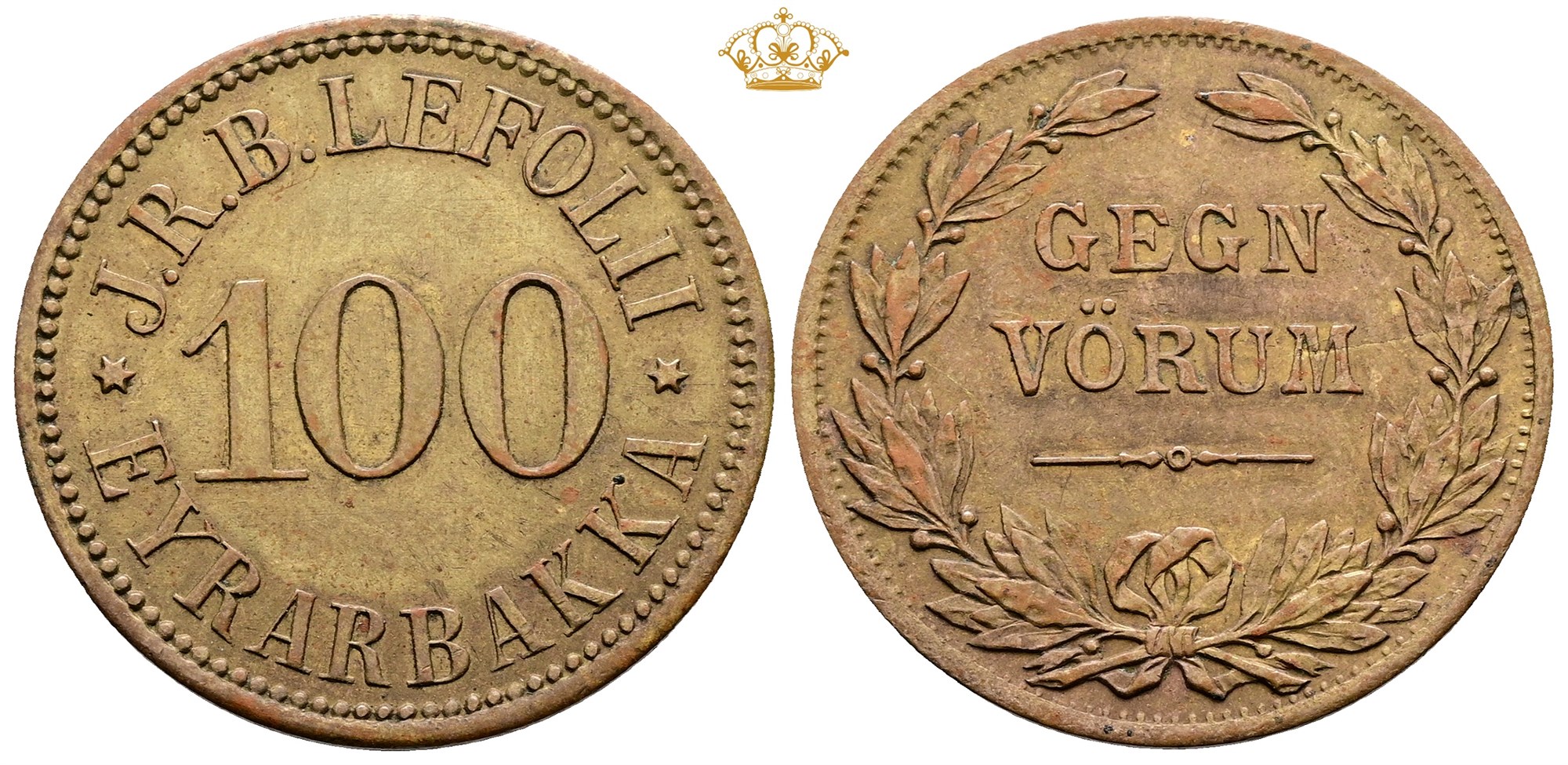 100 Aurar, ND (c. 1890's), token, Ae, 24 mm.