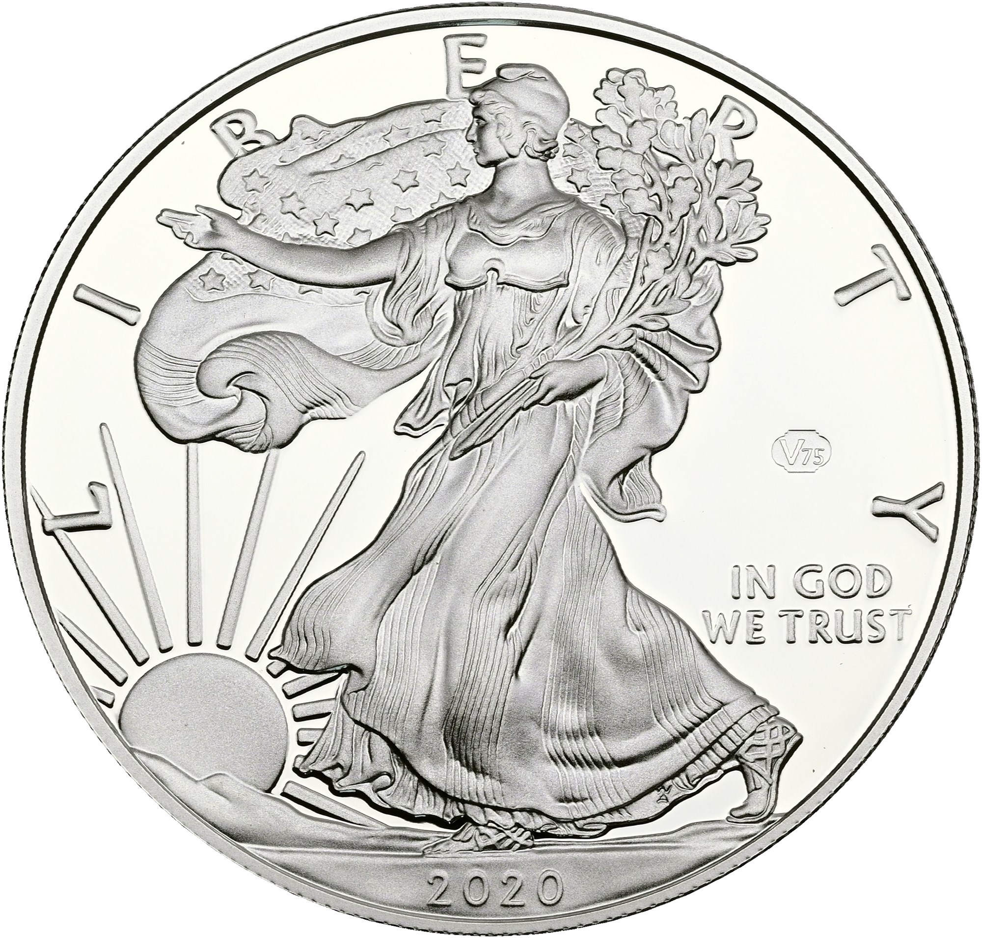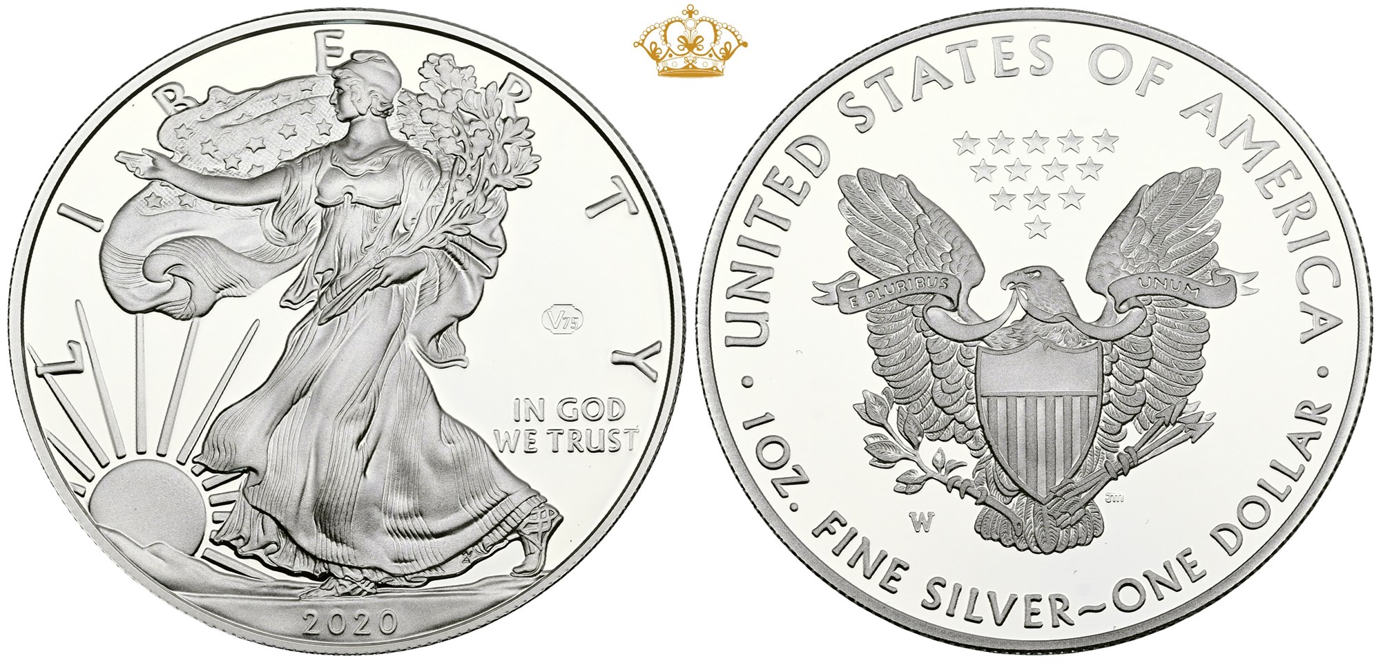 Dollar 2020 W, end of World War II, 75th anniversary, Ag (999/1000), 1 oz - in original box of issue with certificate.