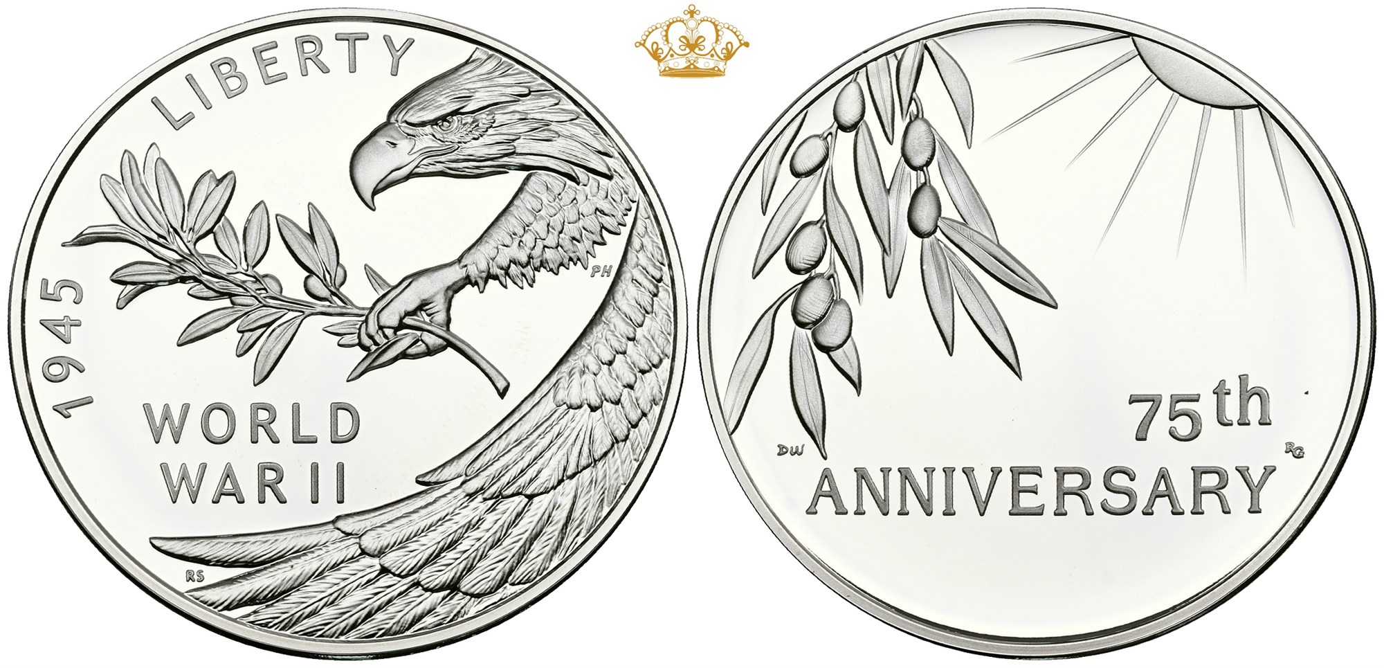 Silver medal, ND (2020), end of World War II, 75th anniversary, Ag (999/1000), 1 oz - in original box of issue with certificate.