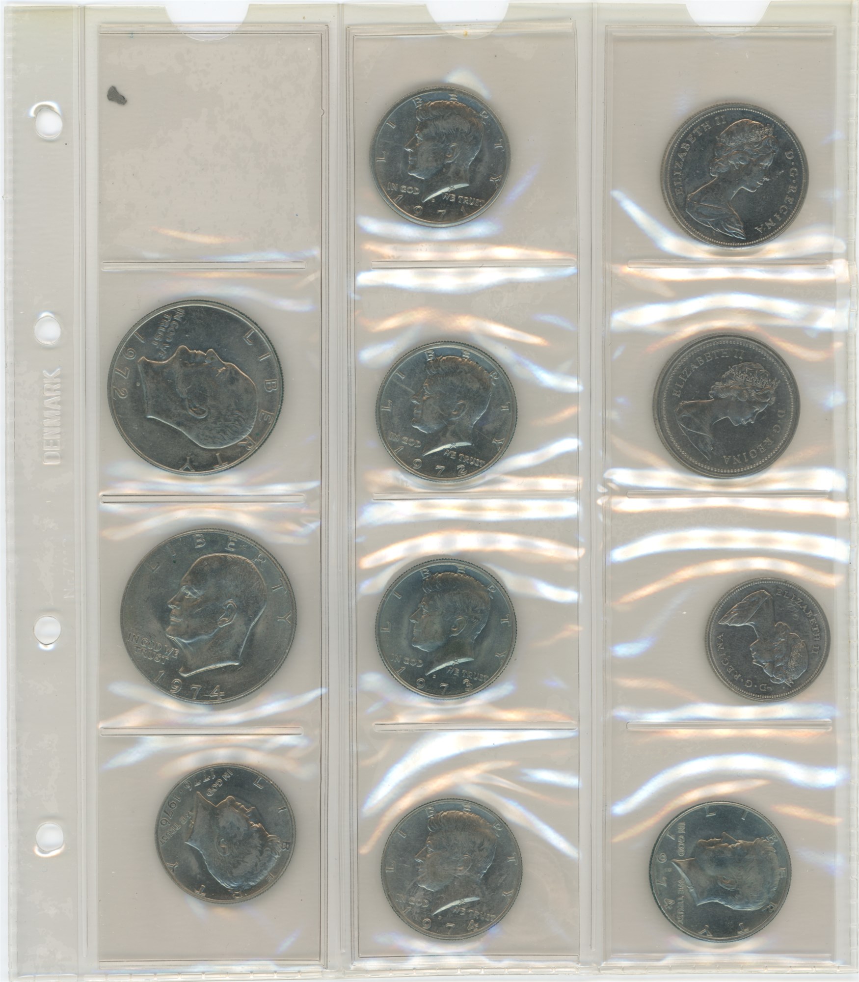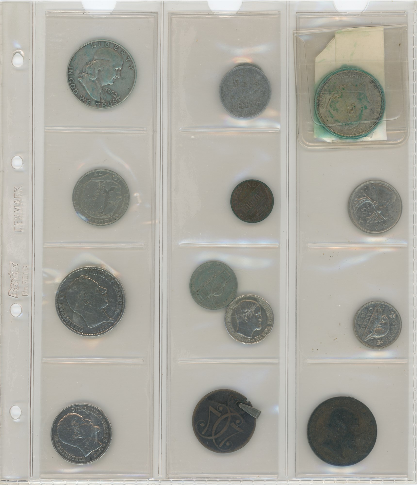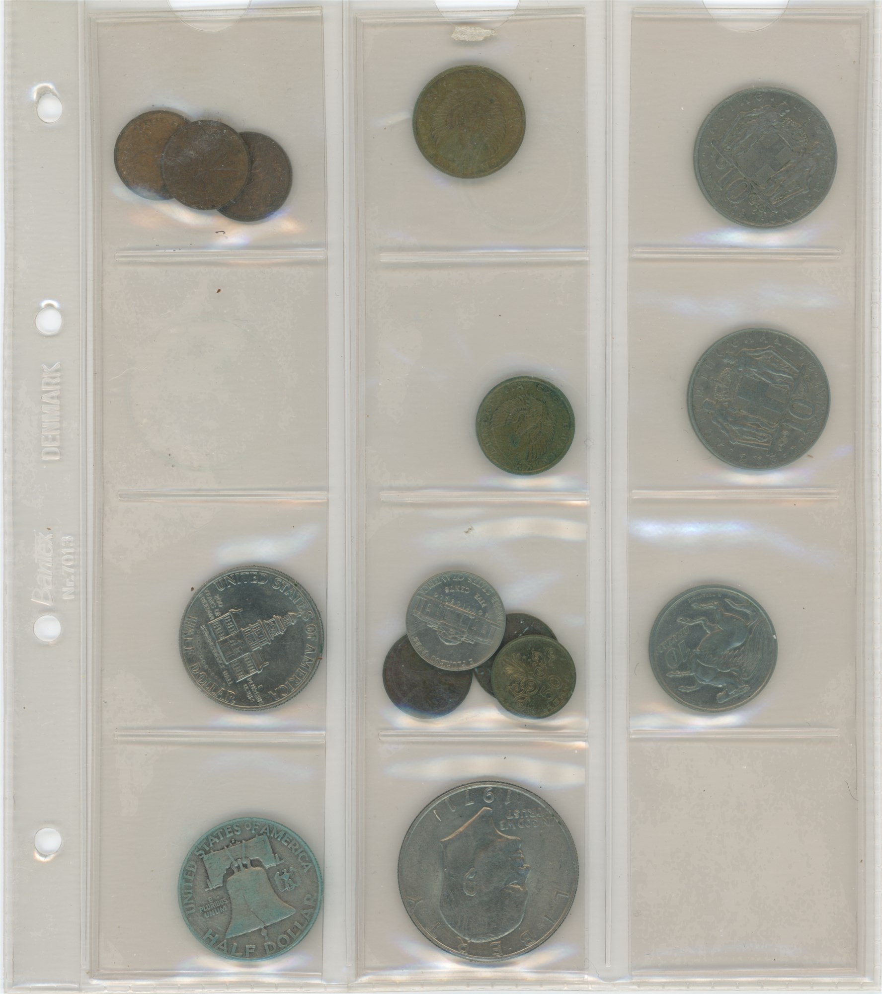 Collection in two albums incl. Denmark, 16 skilling 1856; 1/2 rigsdaler 1854; 2 kroner 1876; Ag commemorative, 2 kroner 1930; Norway, skilling 1771 (perf.); USA, Half Dollar 1954 D, 1962 D.